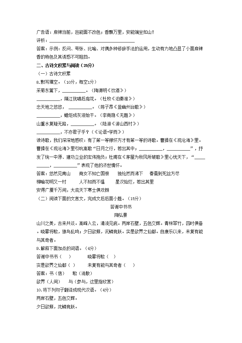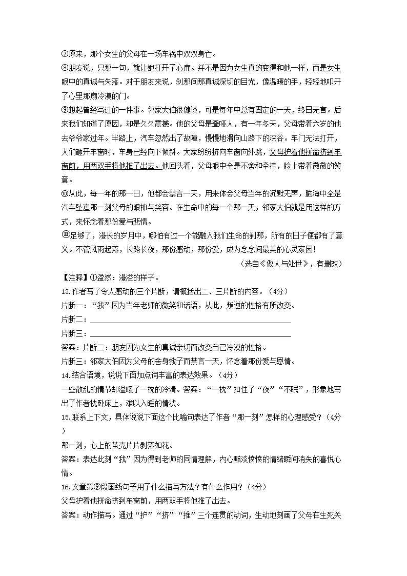 【文档名称】 2016年重庆涪陵中考语文真题及答案A卷(Word版).doc