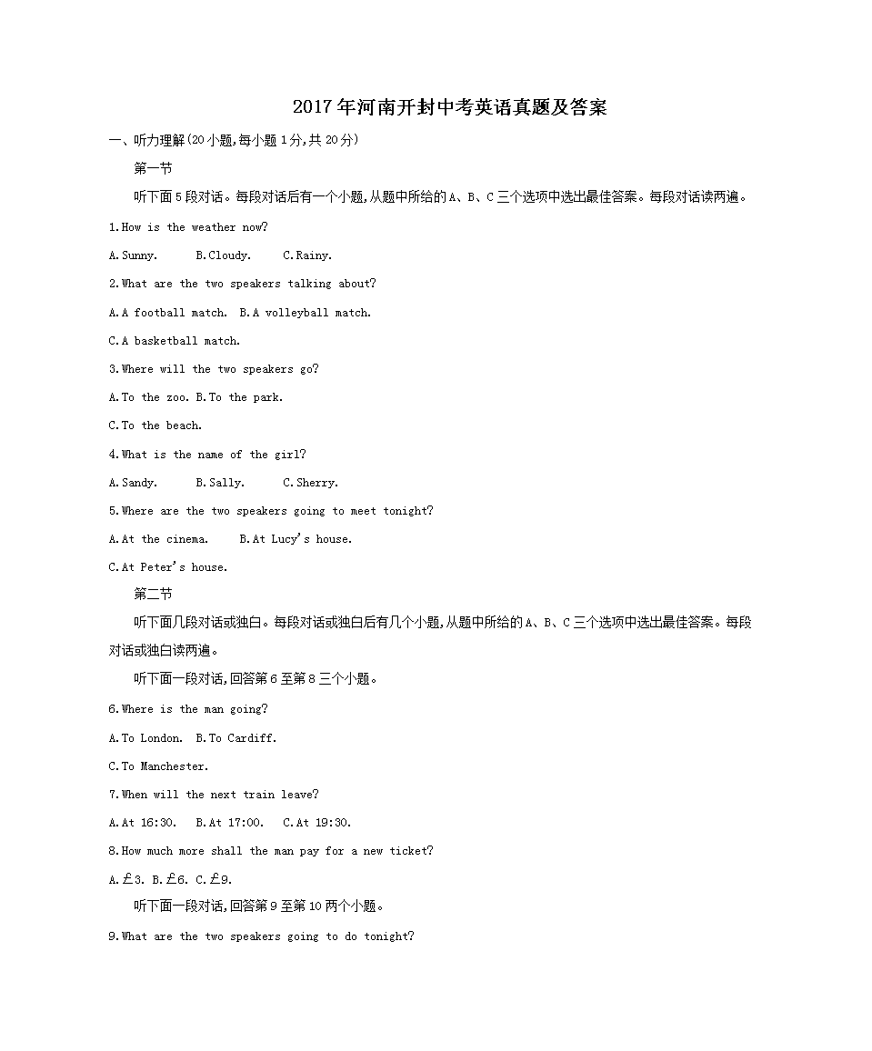 【文档名称】 2017年河南开封中考英语真题及答案(Word版).doc