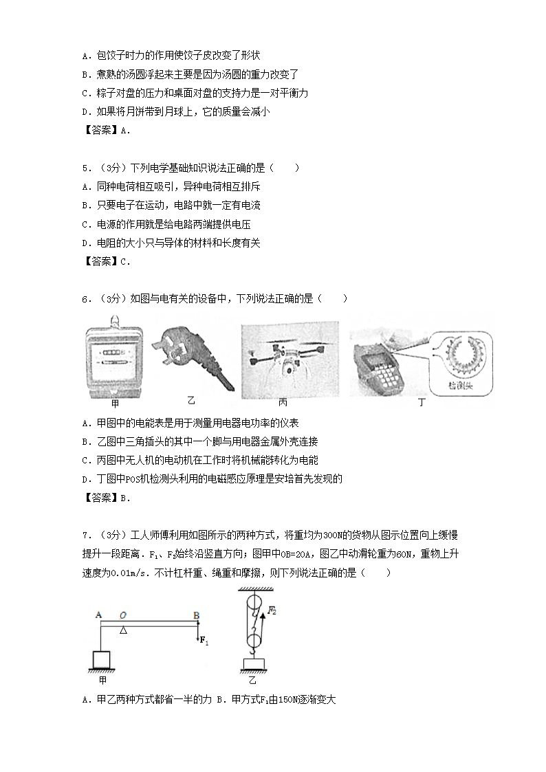 【文档名称】 2017年重庆涪陵中考物理真题及答案B卷(Word版).doc