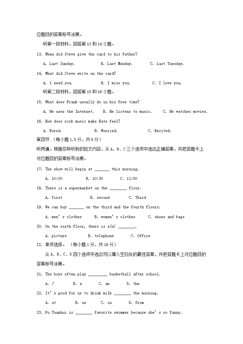 【文档名称】 2017年重庆北碚中考英语真题及答案B卷(Word版).doc