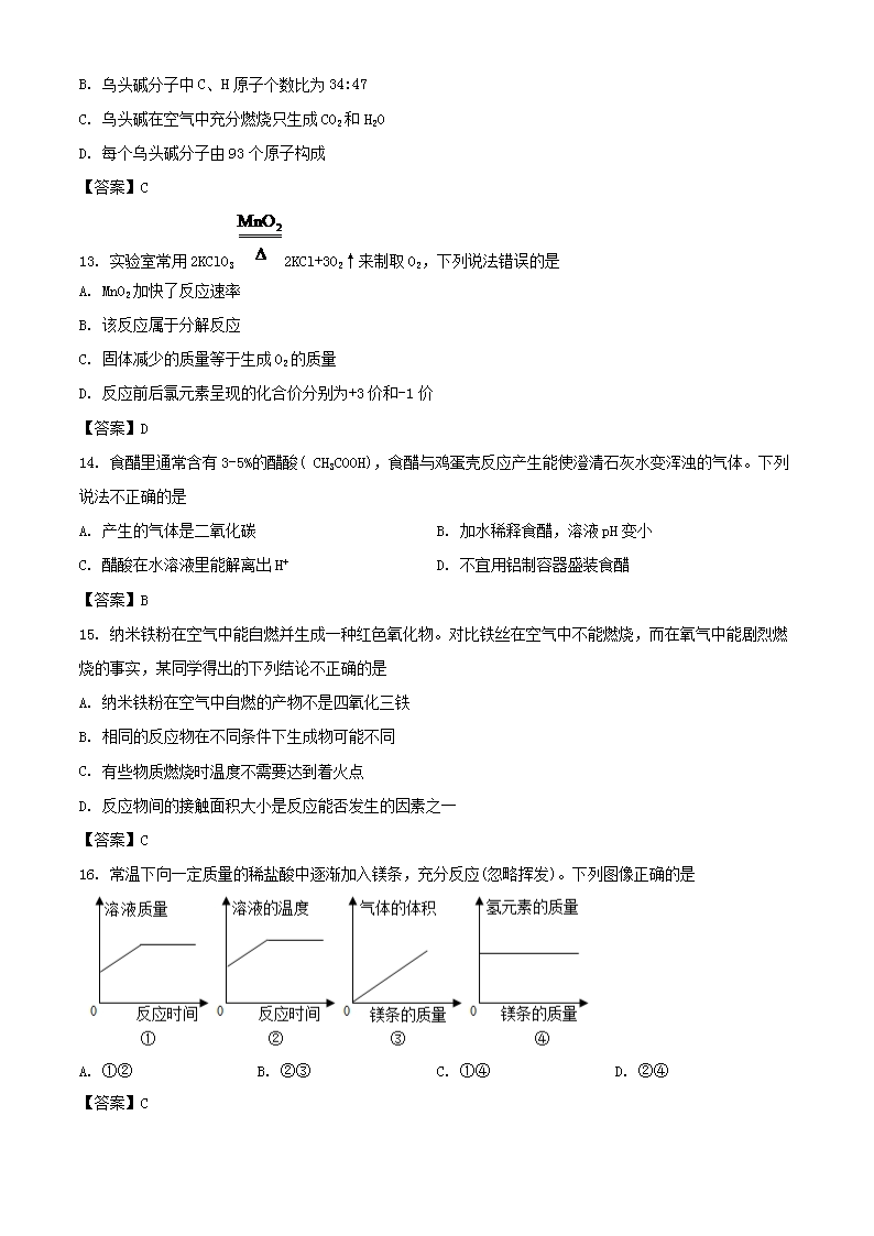 【文档名称】 2018年重庆北碚中考化学真题及答案A卷(Word版).doc