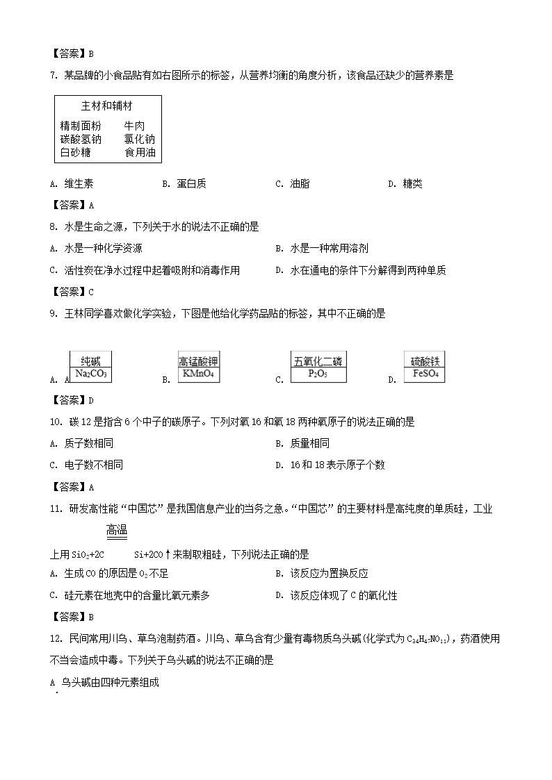 【文档名称】 2018年重庆九龙坡中考化学真题及答案A卷(Word版).doc