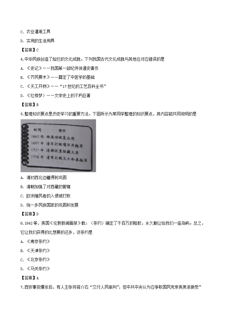 【文档名称】 2019年重庆江津中考历史真题及答案A卷(Word版).doc