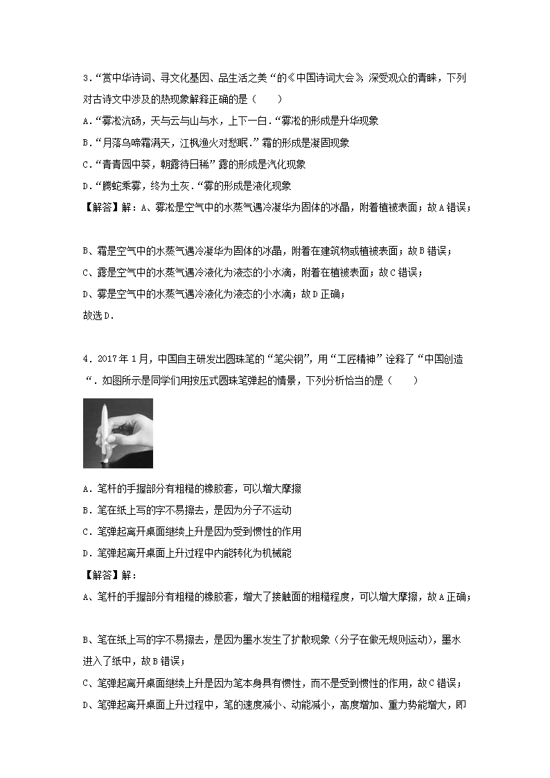 【文档名称】 2017年重庆江北中考物理试题及答案A卷(Word版).doc