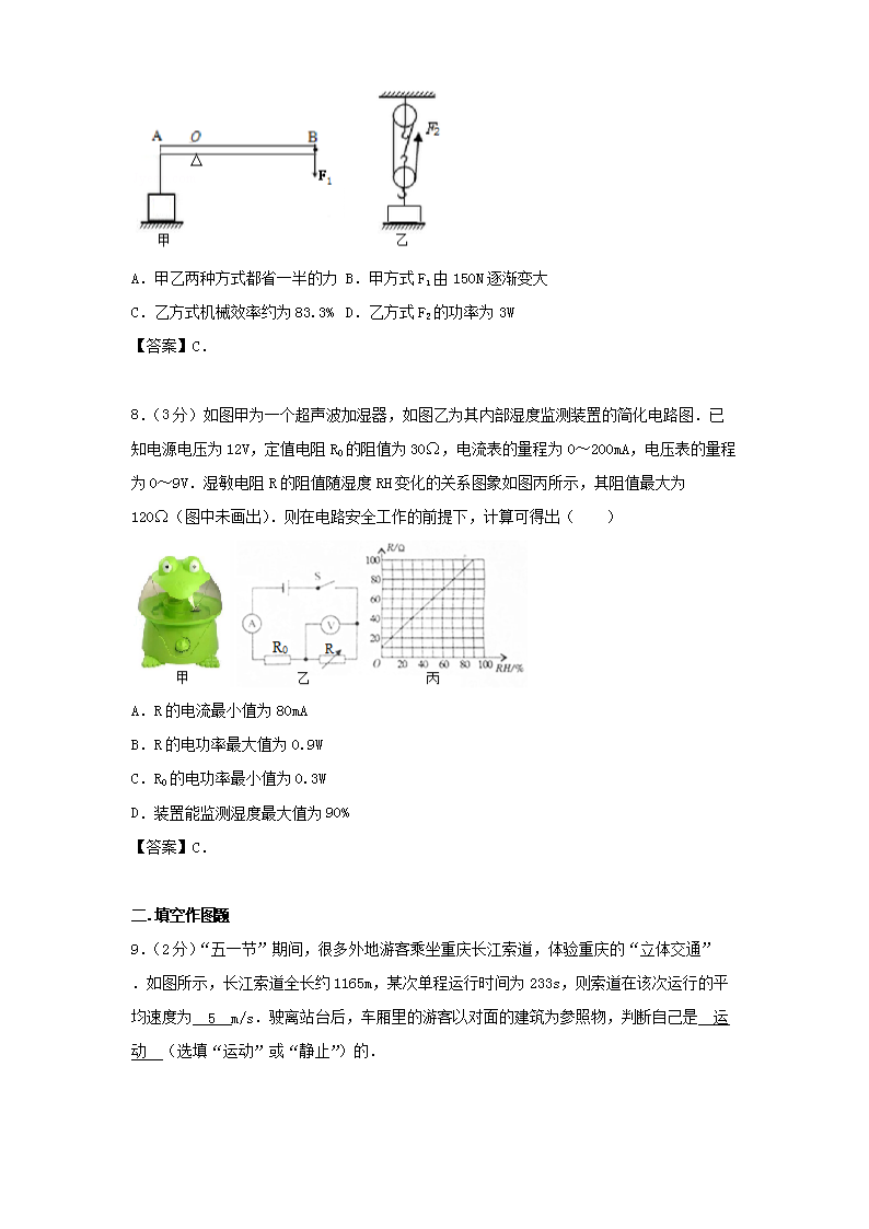 【文档名称】 2017年重庆江北中考物理试题及答案B卷(Word版).doc