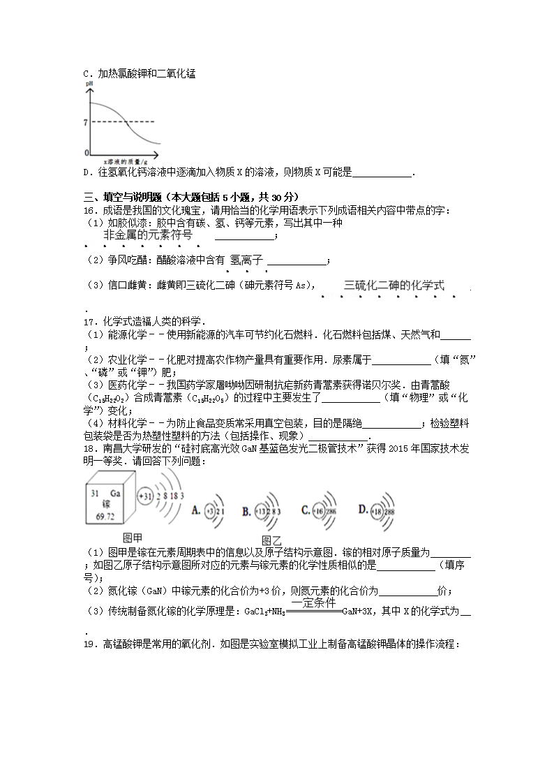 【文档名称】 2016年江西南昌中考化学真题及答案(Word版).doc