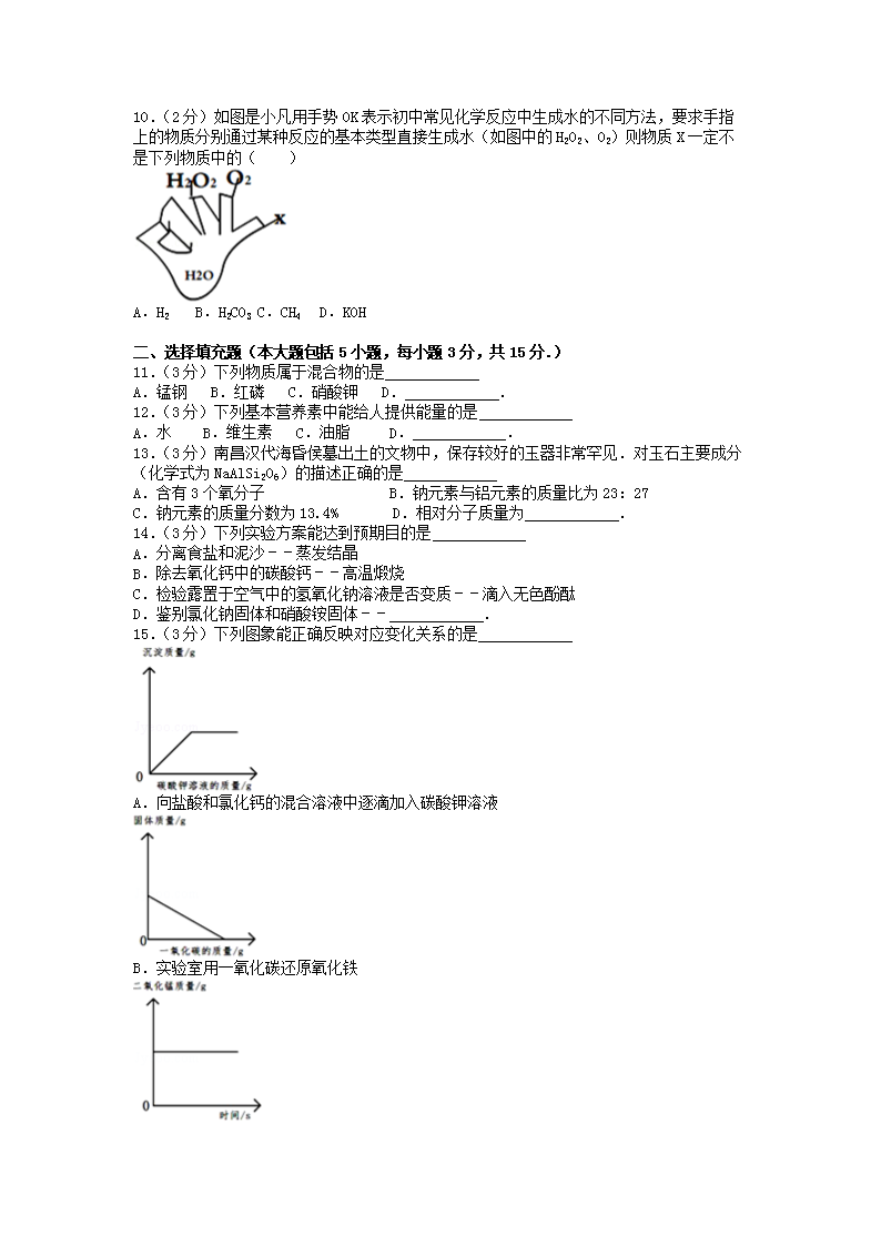 【文档名称】 2016年江西新余中考化学真题及答案(Word版).doc