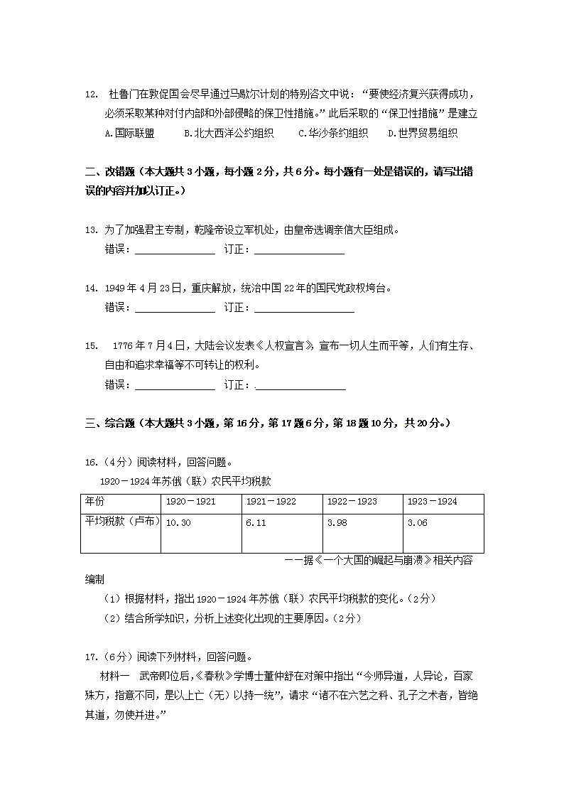 【文档名称】 2016年江西鹰潭中考历史真题及答案(Word版).doc