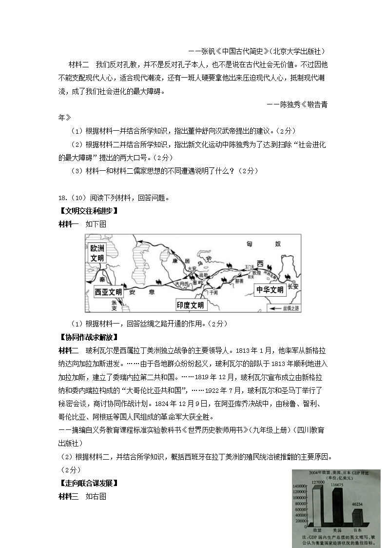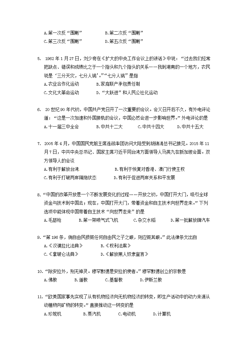 【文档名称】 2016年江西中考历史真题及答案(Word版).doc