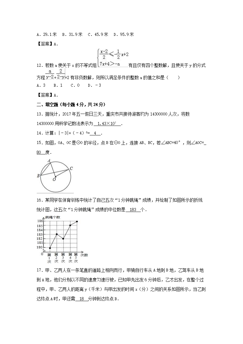 【文档名称】 2017年重庆江津中考数学真题及答案B卷(Word版).doc