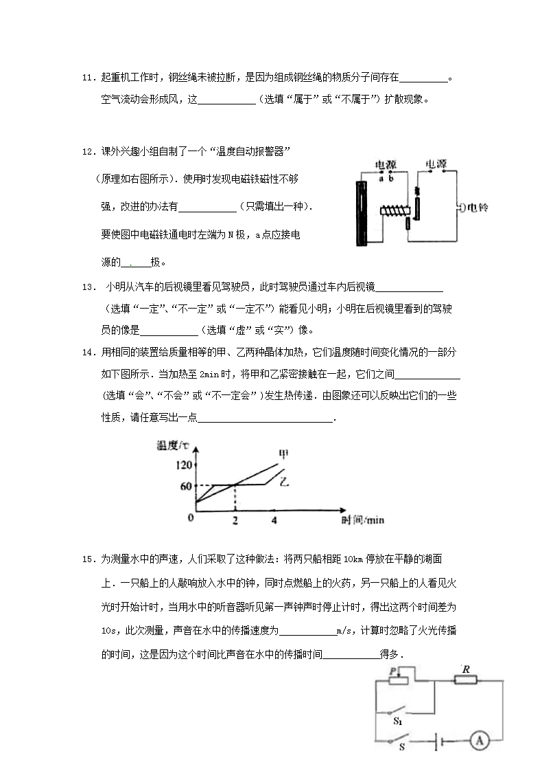 【文档名称】 2016年云南红河中考物理真题及答案(Word版).doc