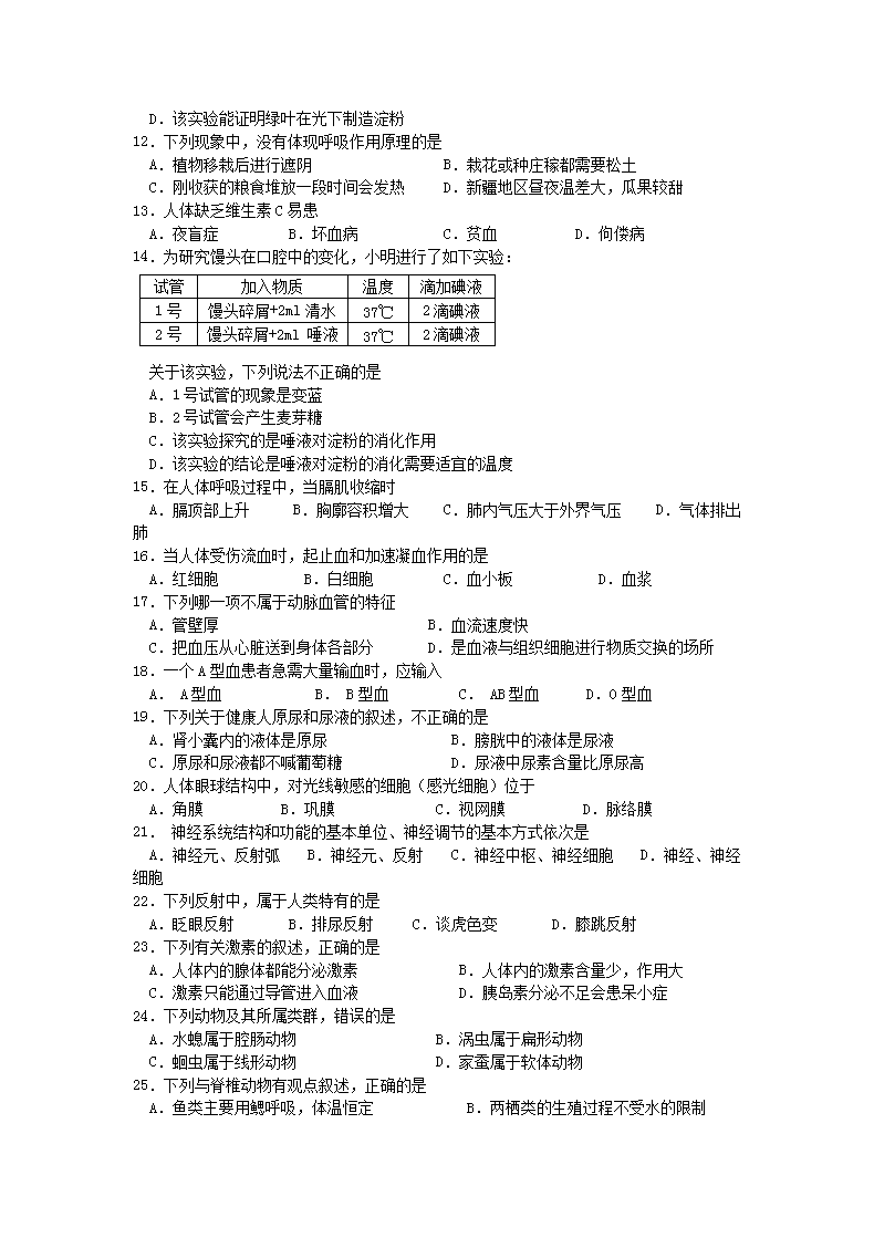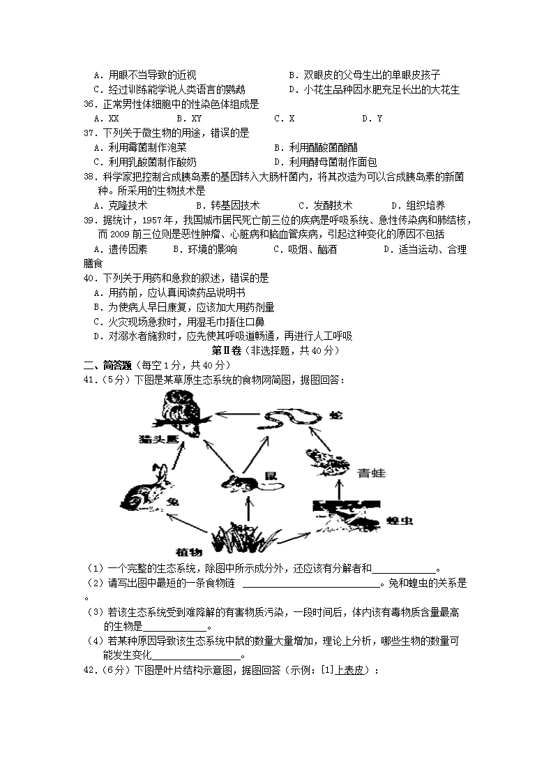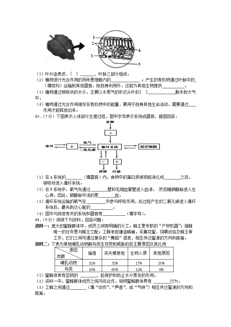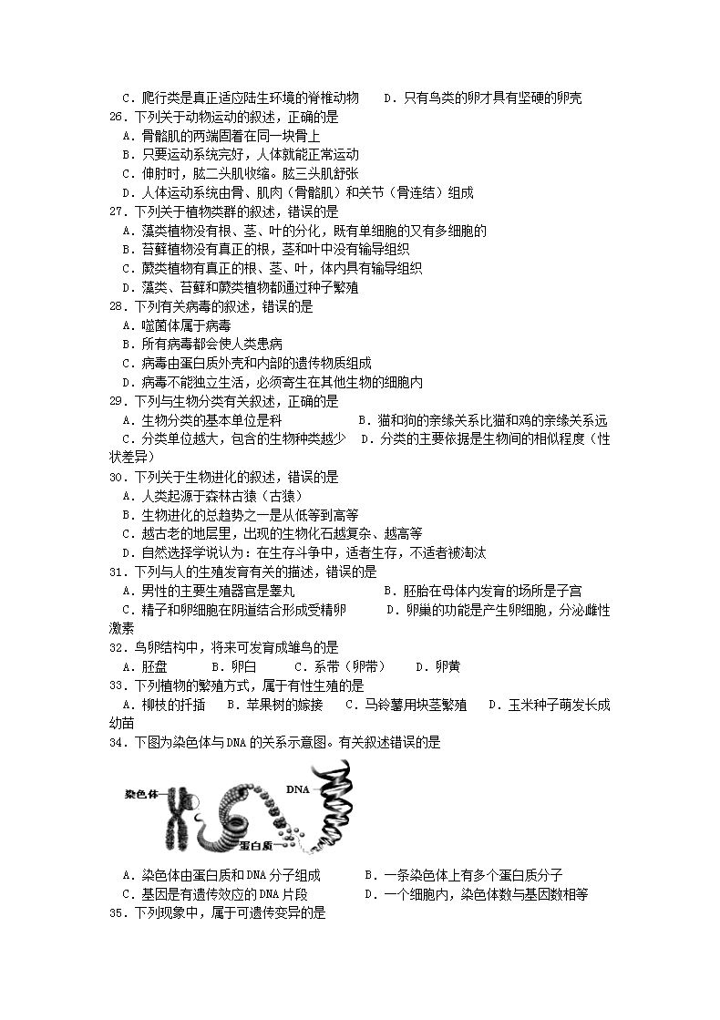 【文档名称】 2016年云南丽江中考生物真题及答案(Word版).doc