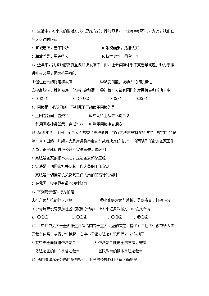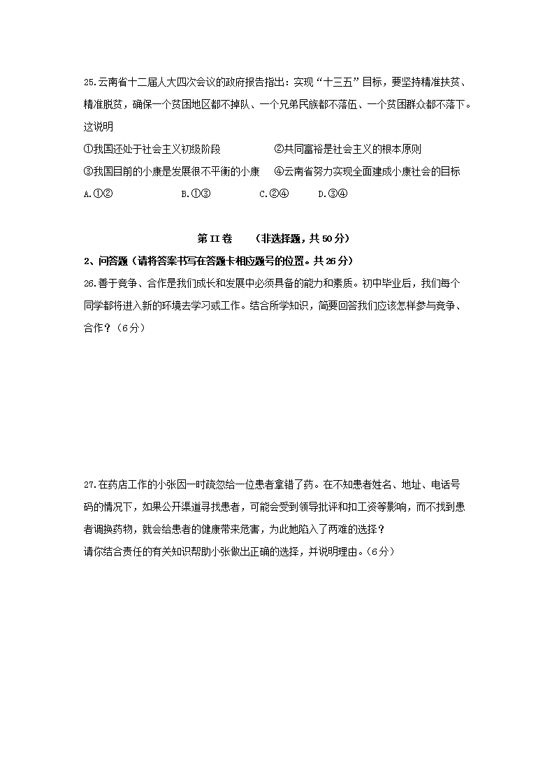 【文档名称】 2016年云南丽江中考道德与法治真题及答案(Word版).doc