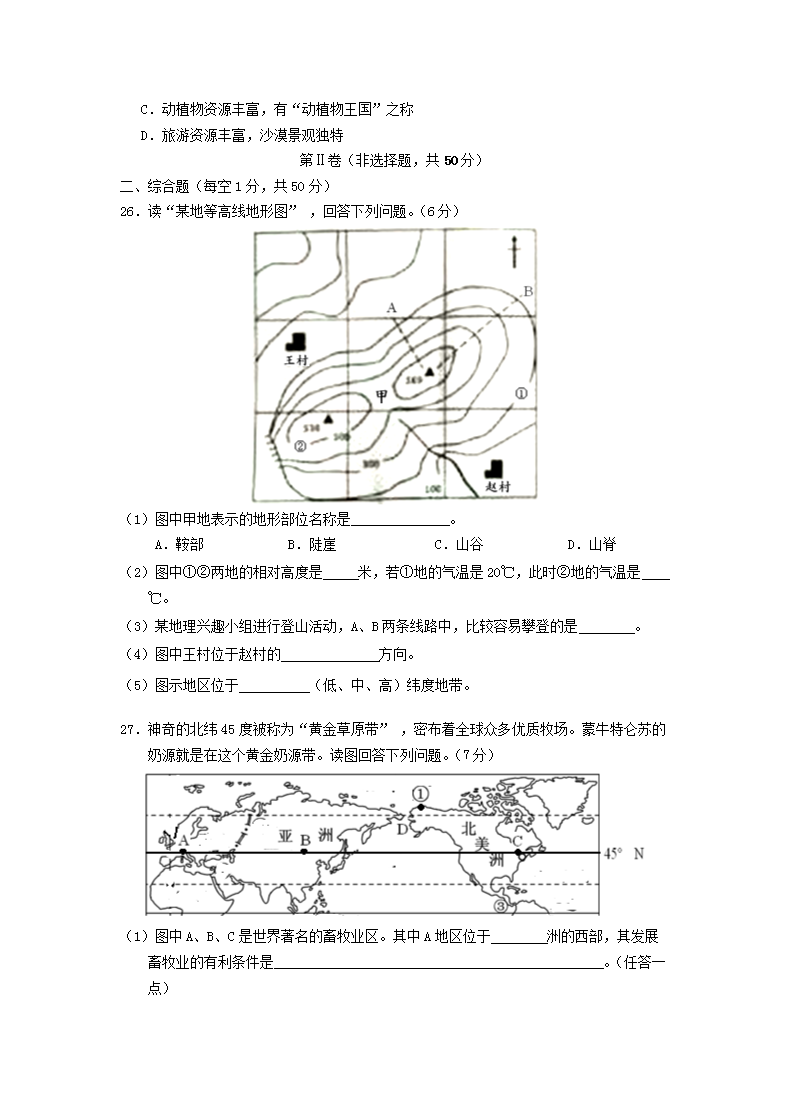【文档名称】 2016年云南丽江中考地理真题及答案(Word版).doc