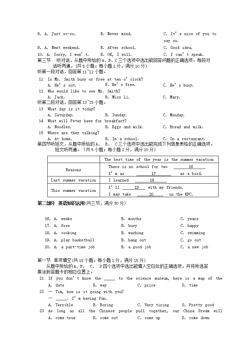 【文档预览】 无忧考网整理发布2016年云南临沧中考英语真题及答案(Word版),前五页预览如下: