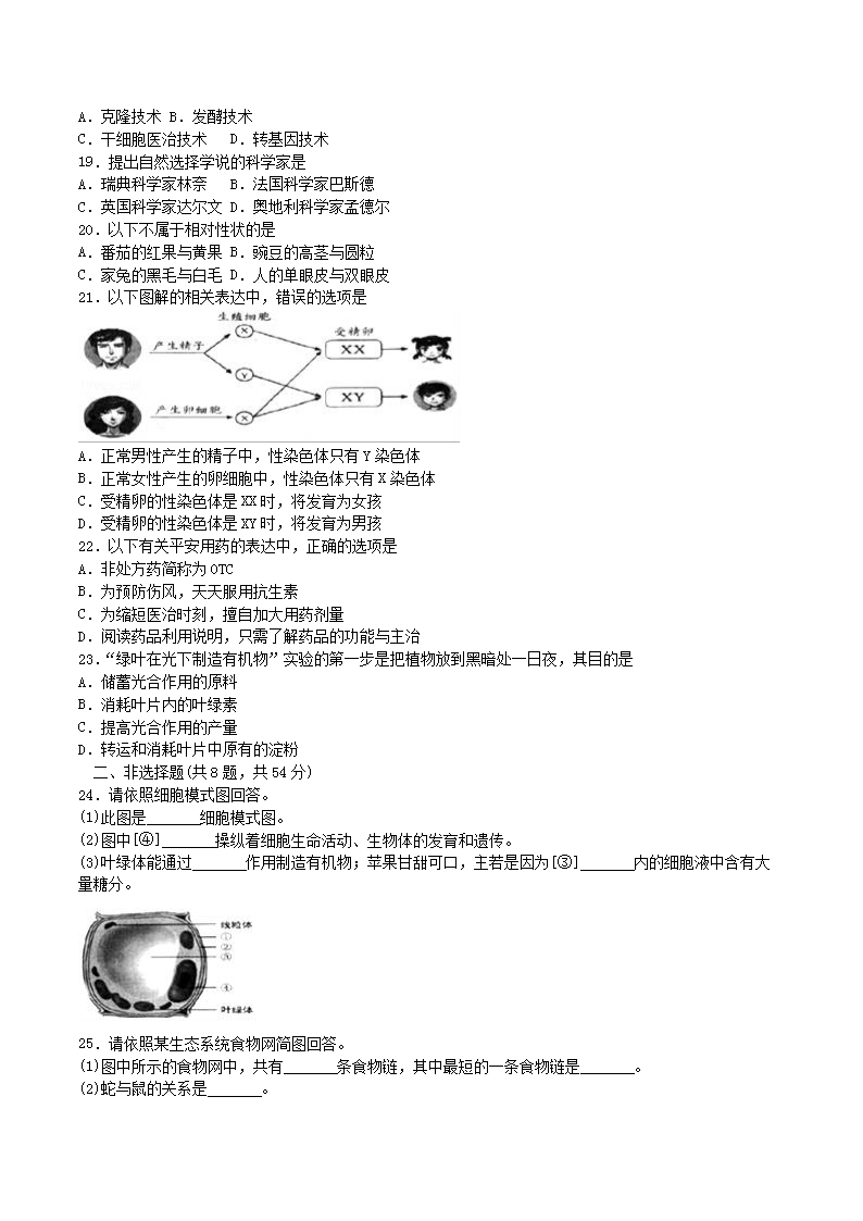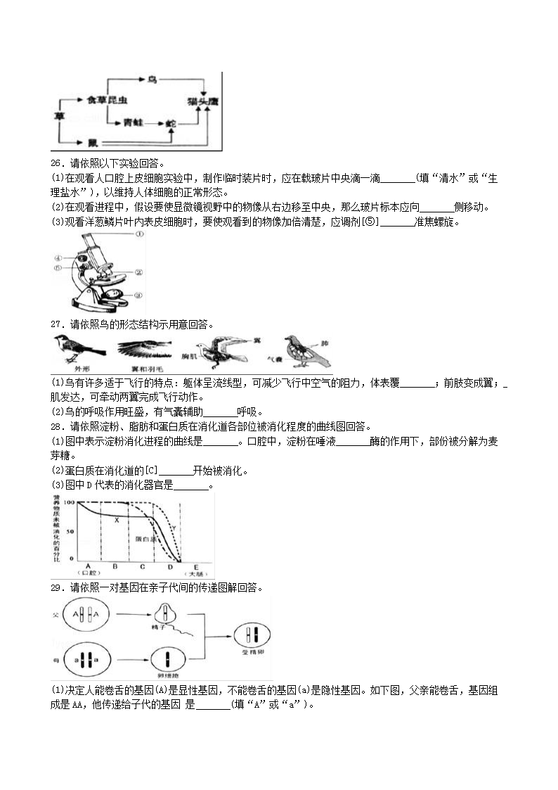 【文档名称】 2017年天津大港中考生物真题及答案(Word版).doc