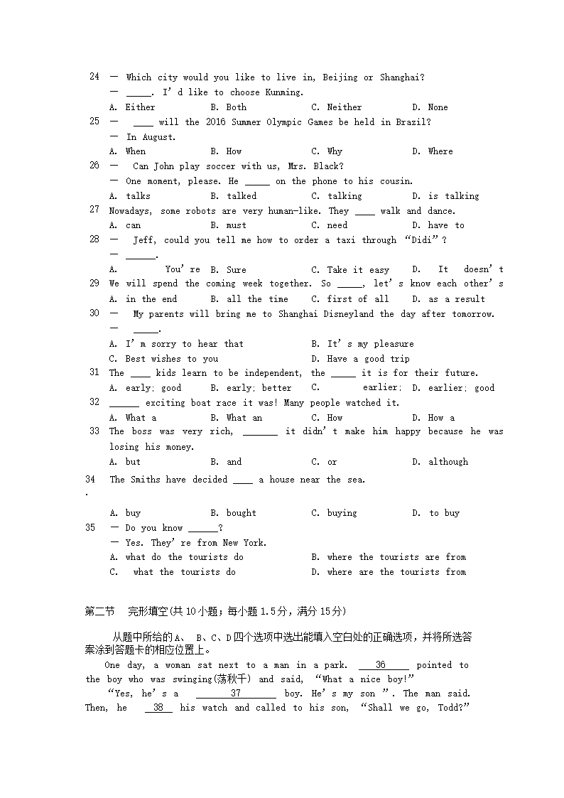 【文档名称】 2016年云南昭通中考英语真题及答案(Word版).doc