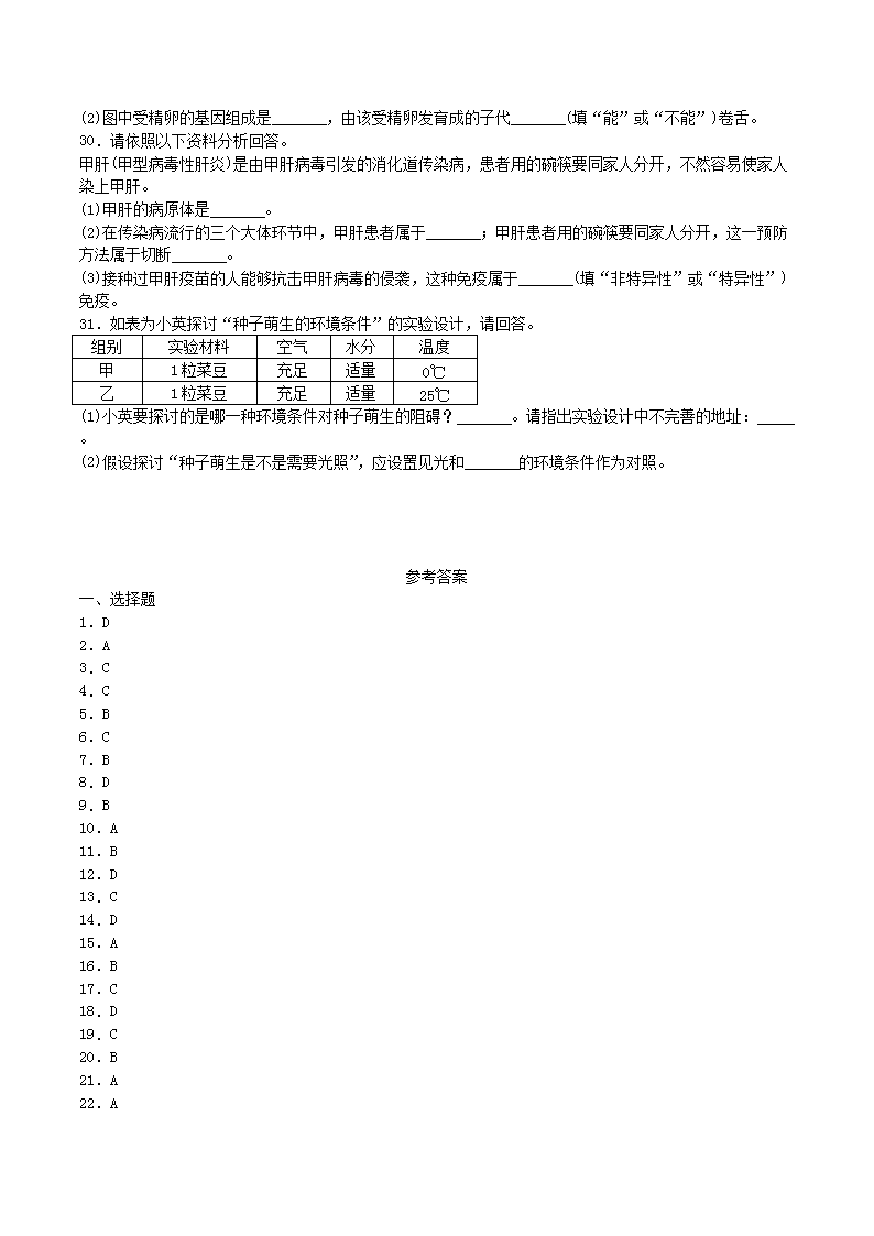 【文档名称】 2017年天津河北区中考生物真题及答案(Word版).doc