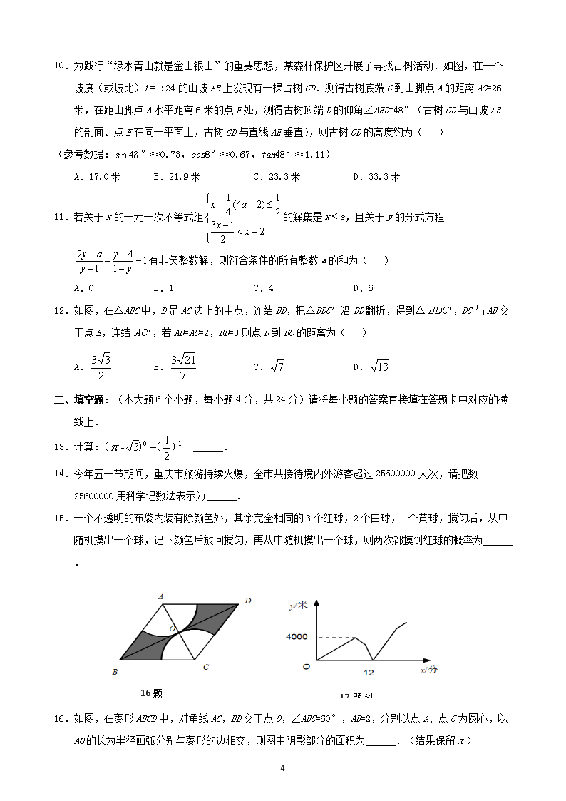 【文档名称】 2019年重庆巴南中考数学真题及答案A卷(Word版).doc