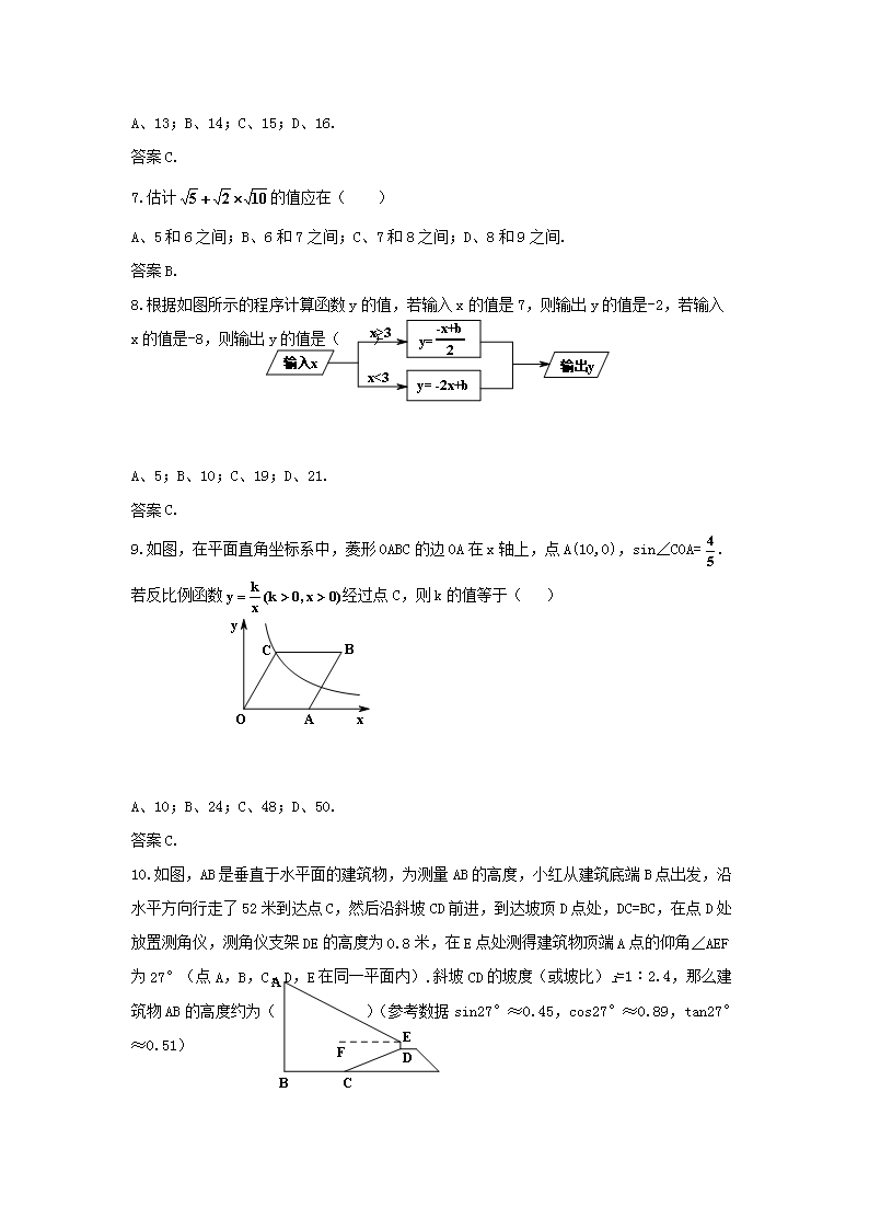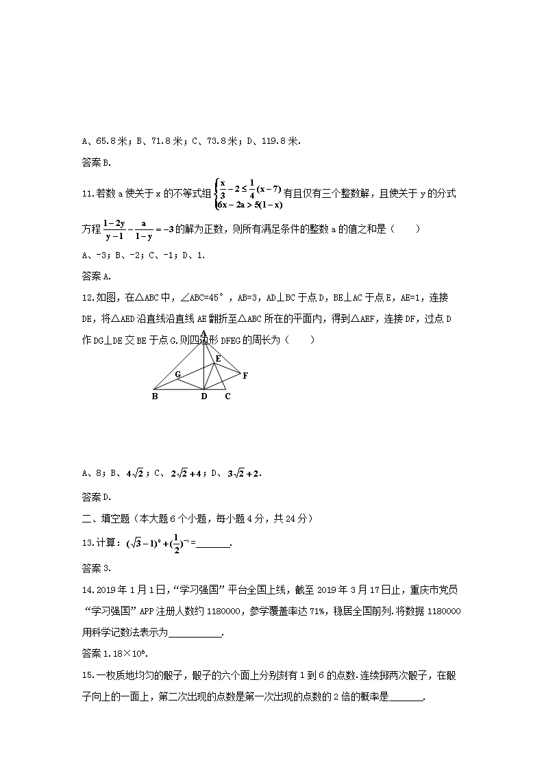 【文档名称】 2019年重庆巴南中考数学真题及答案B卷(Word版).doc