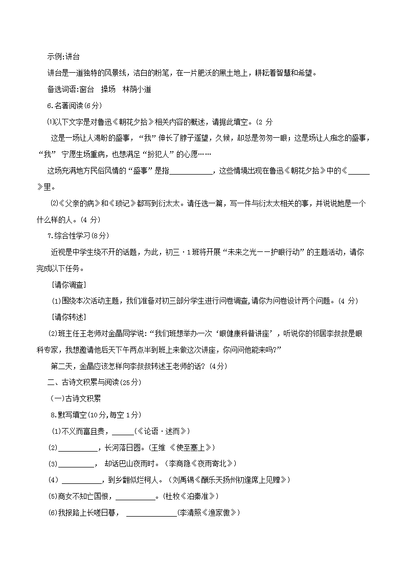 【文档名称】 2019年重庆巴南中考语文真题及答案A卷(Word版).doc