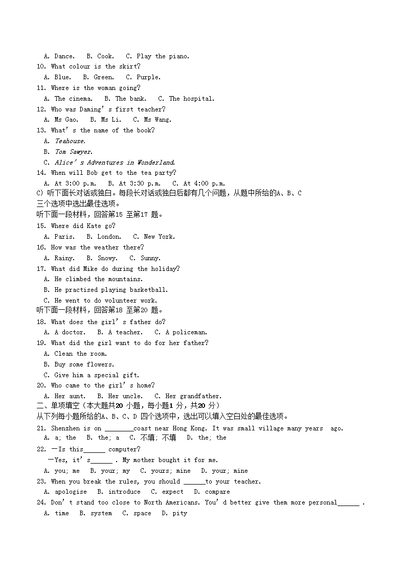 【文档名称】 2017年天津河东中考英语真题及答案(Word版).doc