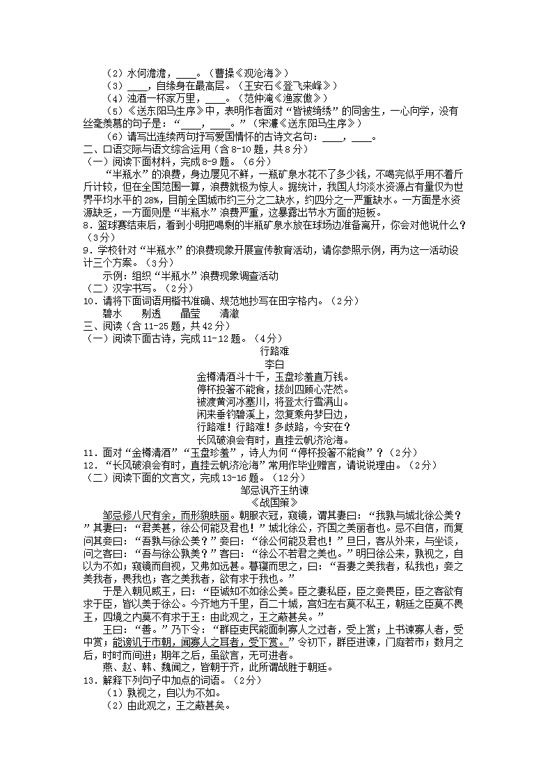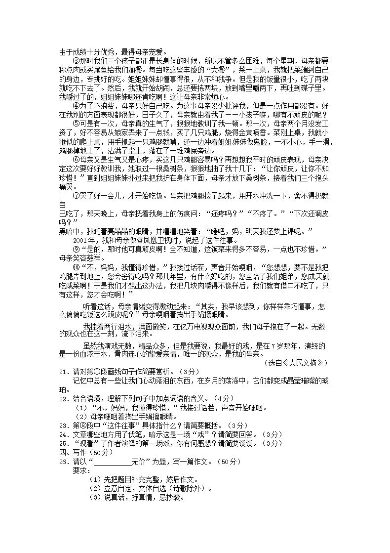 【文档预览】 无忧考网整理发布2016年云南西双版纳中考语文真题及答案(Word版),前五页预览如下: