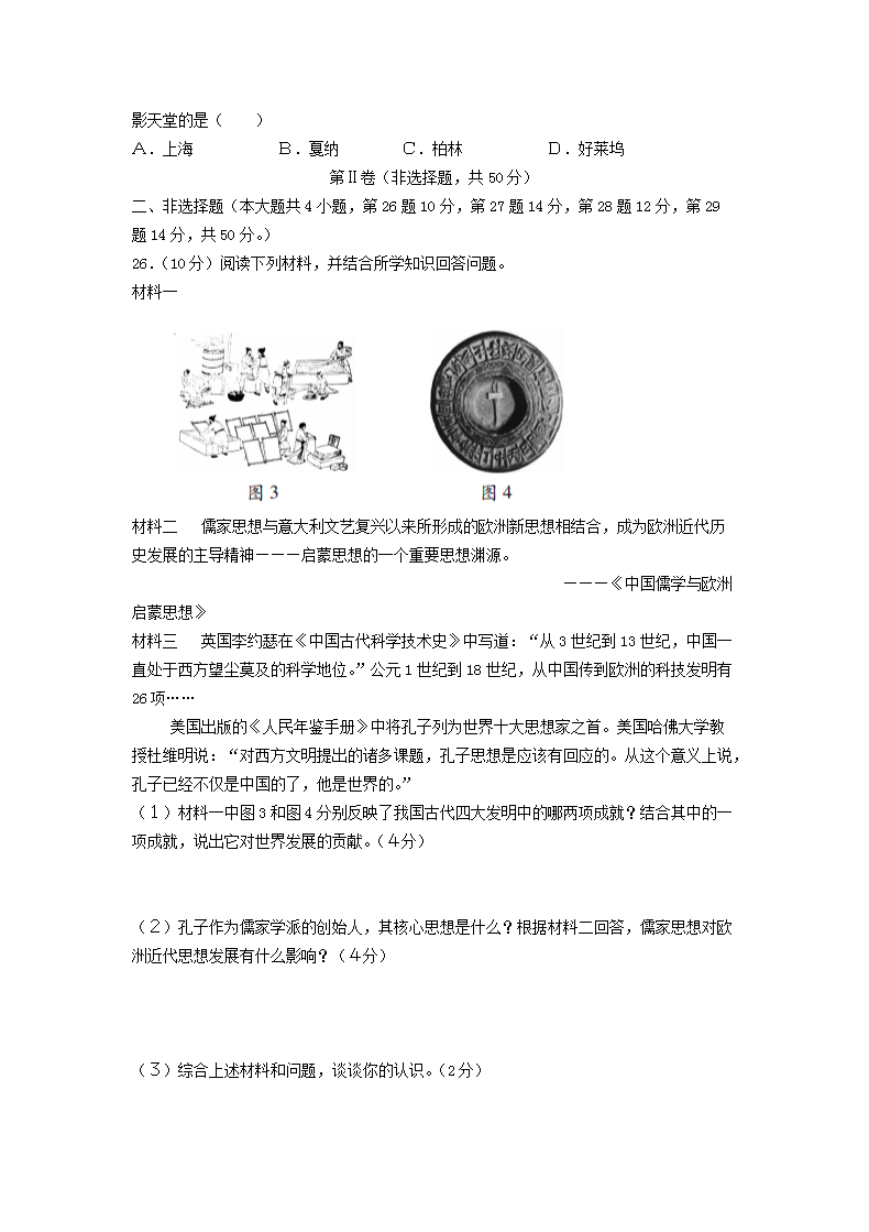【文档名称】 2016年云南西双版纳中考历史真题及答案(Word版).doc