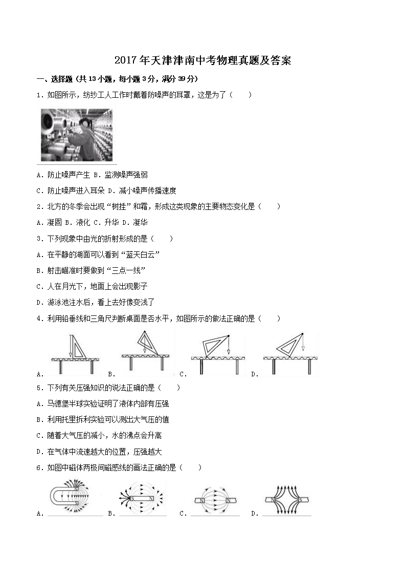 【文档名称】 2017年天津津南中考物理真题及答案(Word版).doc