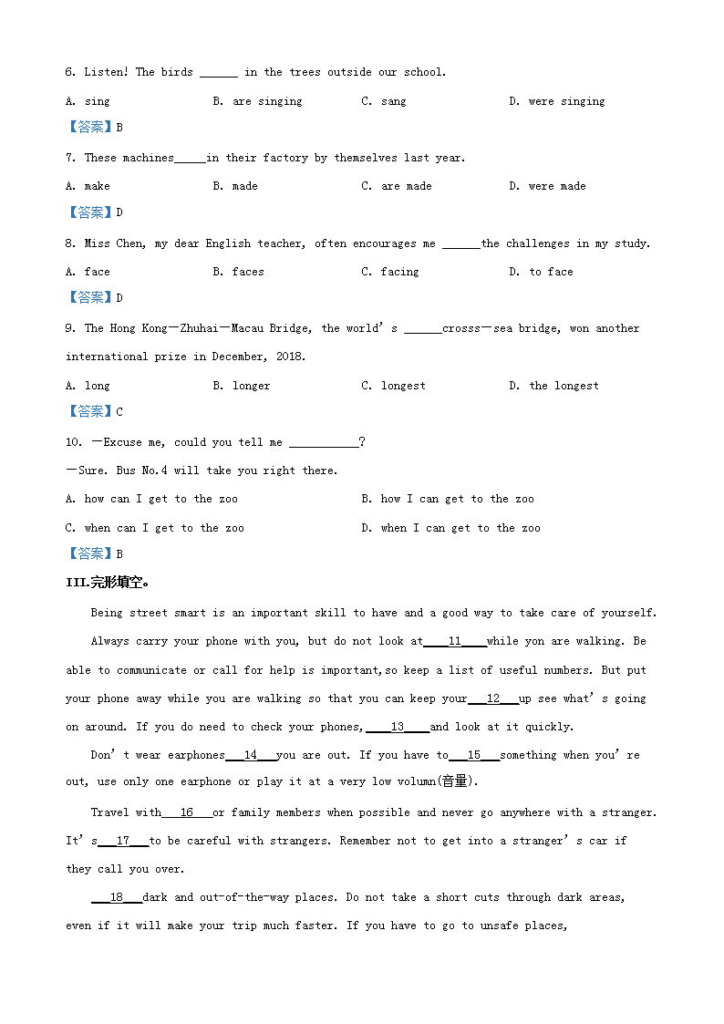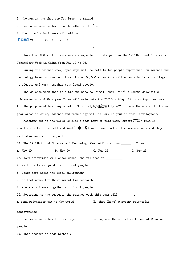 【文档名称】 2019年重庆黔江中考英语真题及答案B卷(Word版).doc