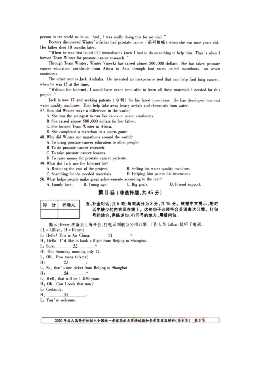 【文档预览】 无忧考网整理发布2020年宁夏成人高考高起点英语真题及答案(图片版),前五页预览如下: