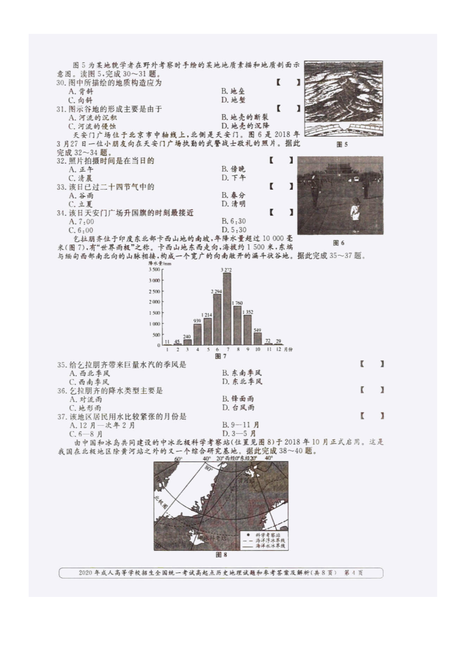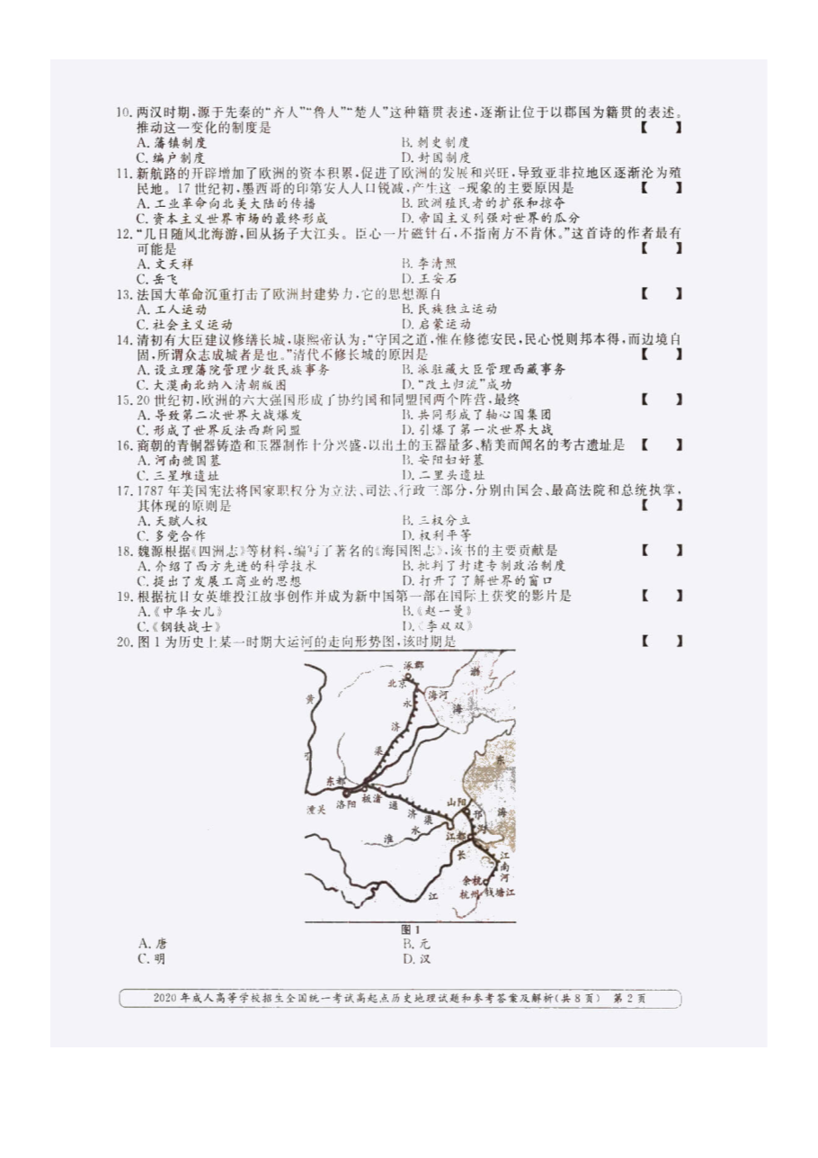 【文档名称】 2020年青海成人高考高起点历史地理(文综)真题及答案(图片版).doc