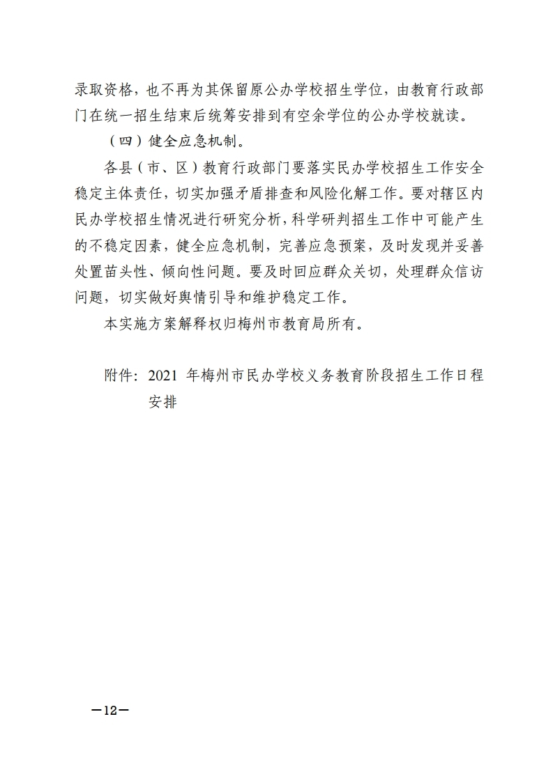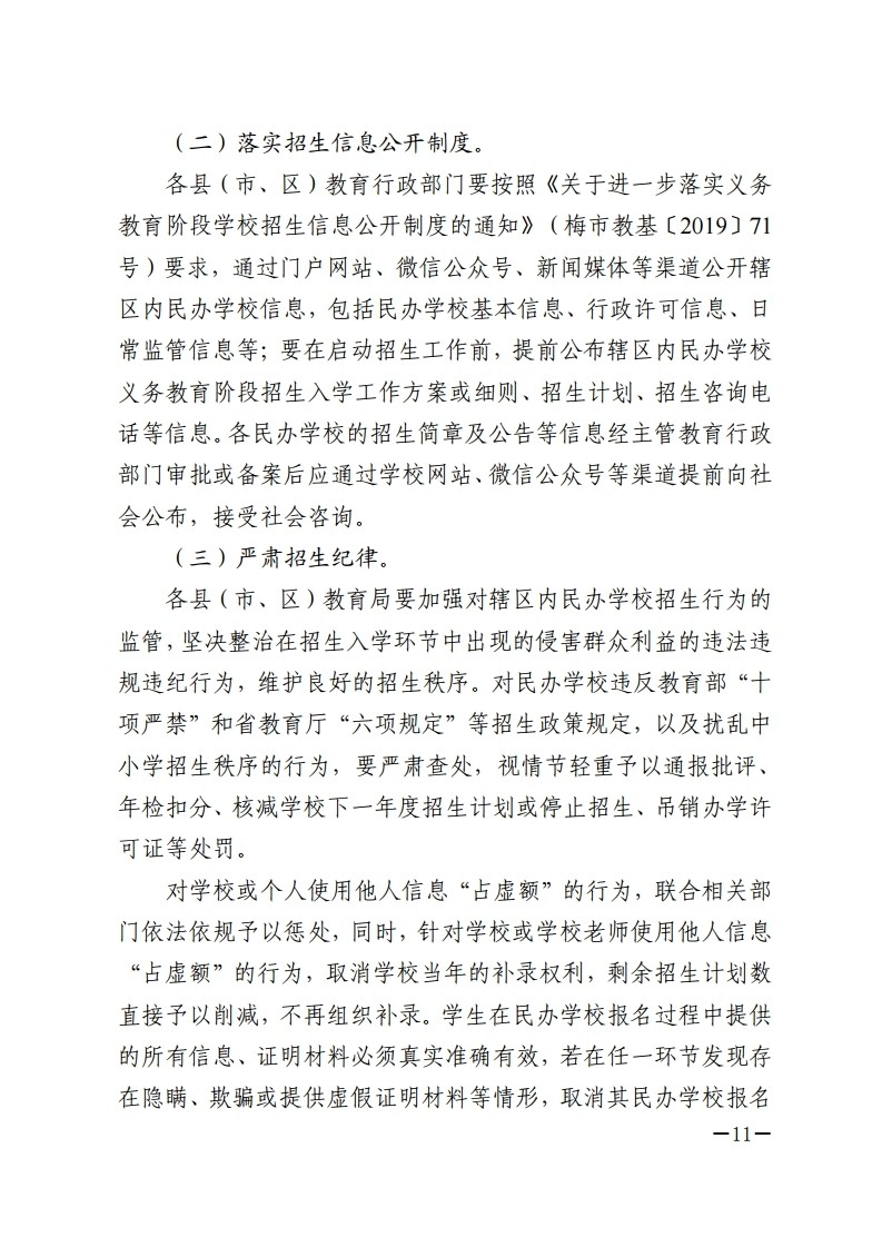 2021年广东梅州民办学校义务教育阶段招生入学工作实施方案