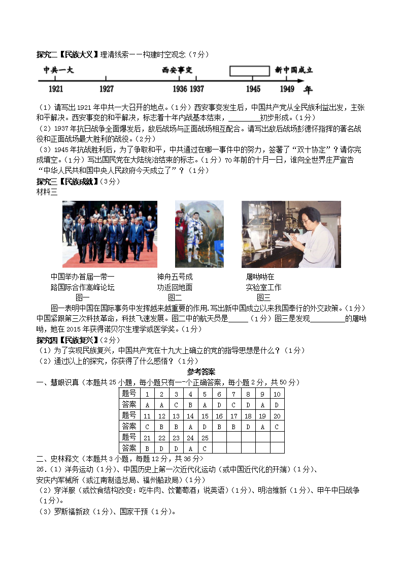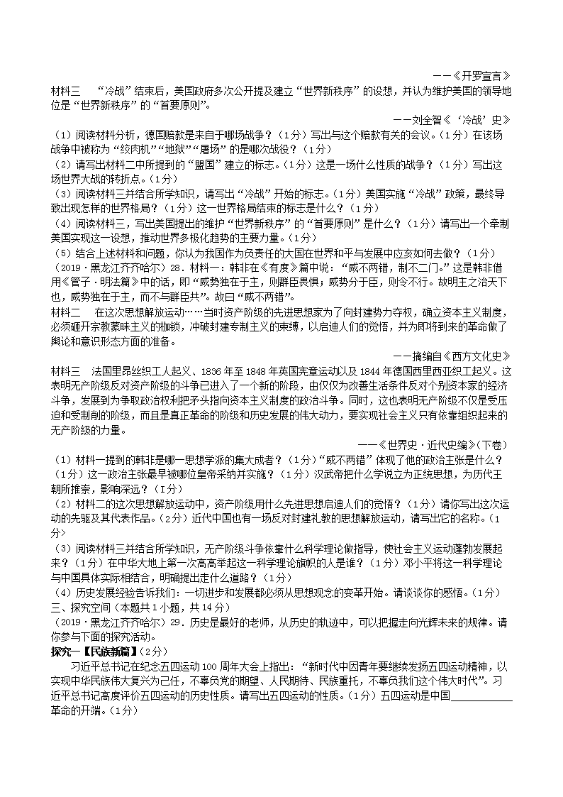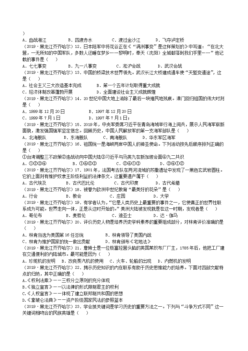 【文档名称】 2019年黑龙江大兴安岭中考历史真题及答案(Word版).doc