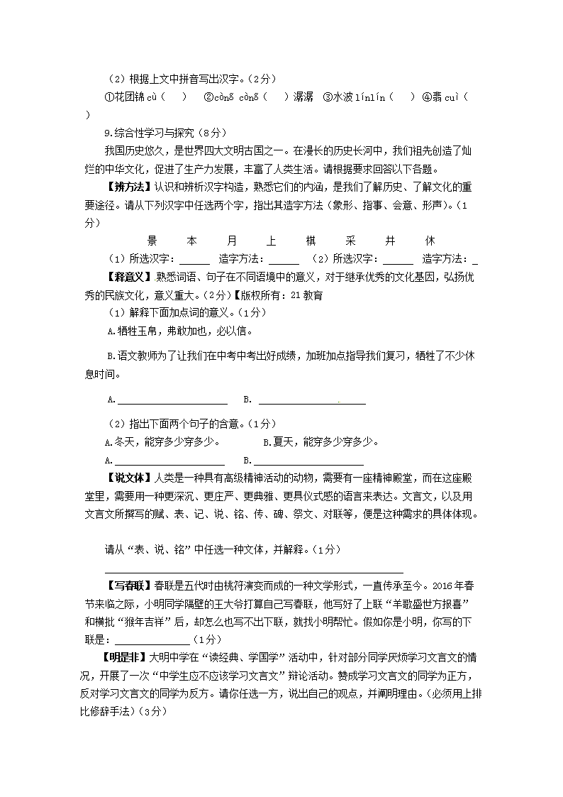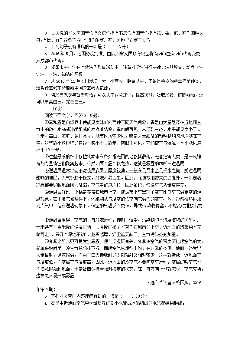 【文档名称】 2016年四川省资阳市中考语文真题及答案(Word版).doc