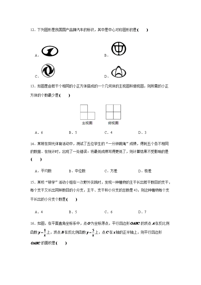 【文档预览】 无忧考网整理发布2019年黑龙江鹤岗市中考数学真题及答案(Word版),前五页预览如下: