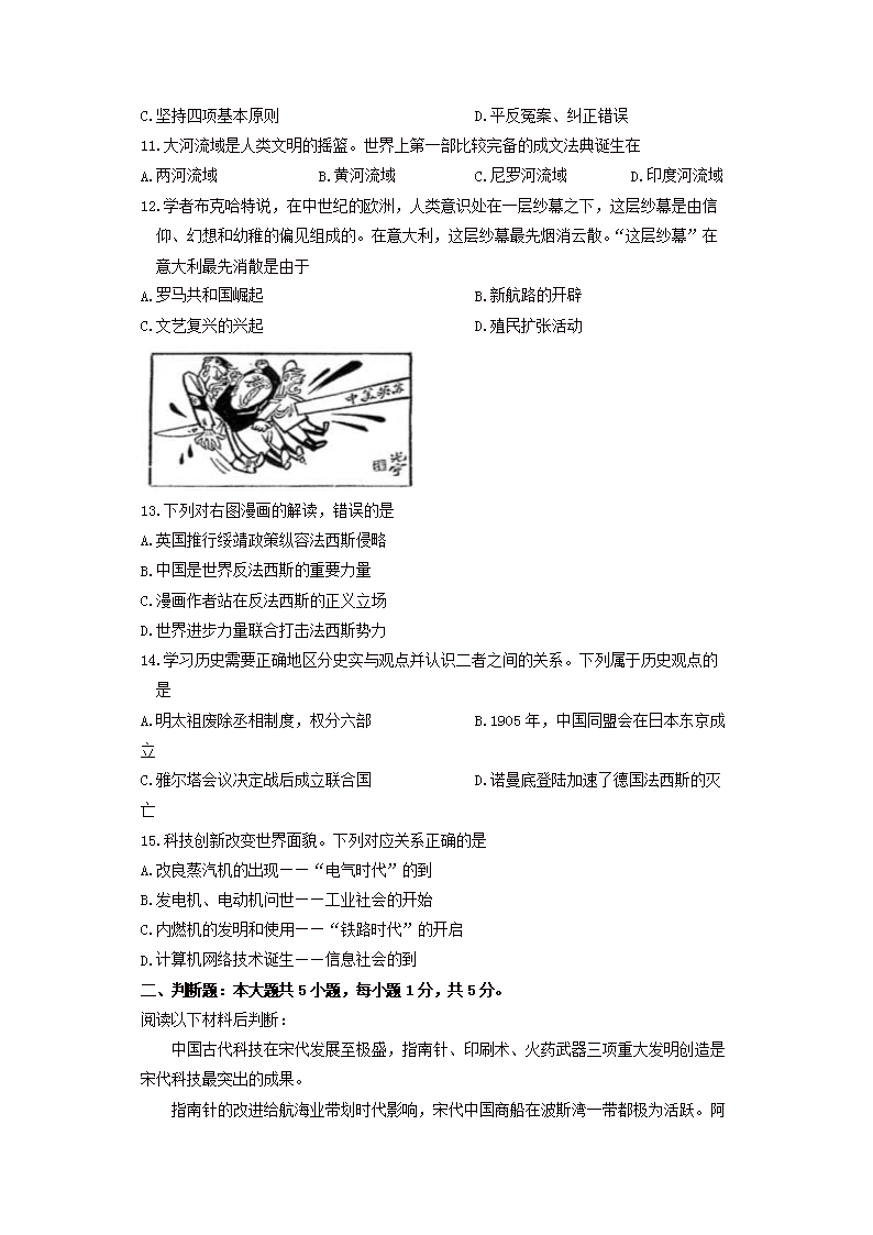 【文档名称】 2016年重庆南川中考历史真题及答案B卷(Word版).doc