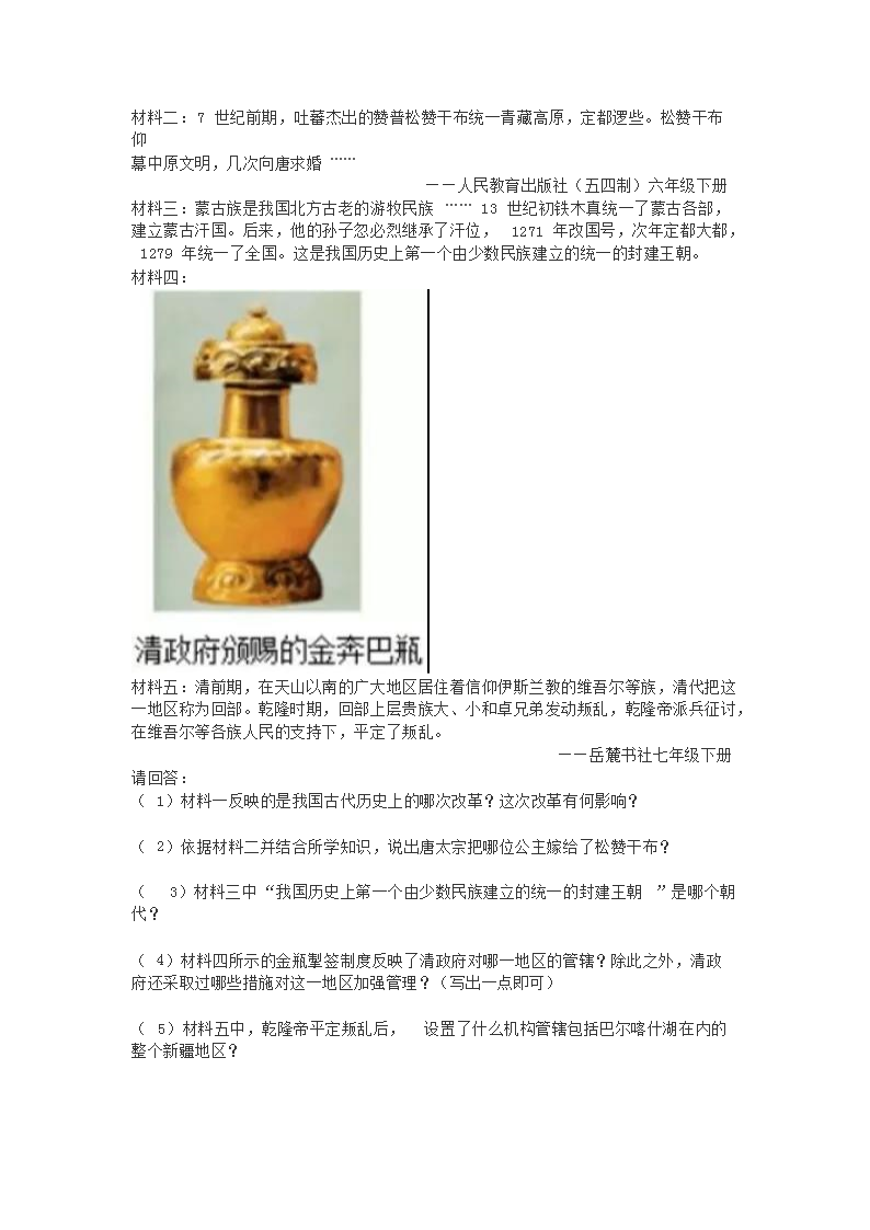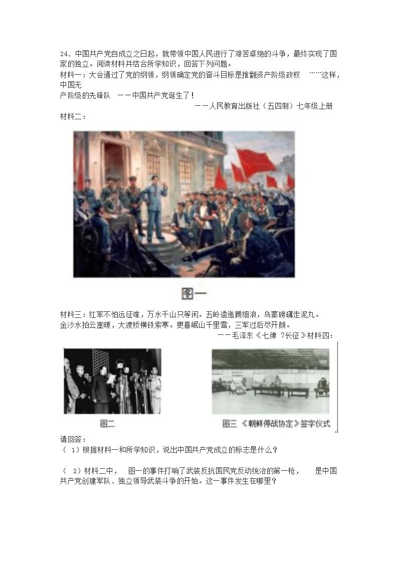 【文档预览】 无忧考网整理发布2019年黑龙江鹤岗中考历史真题及答案(Word版),前五页预览如下:
