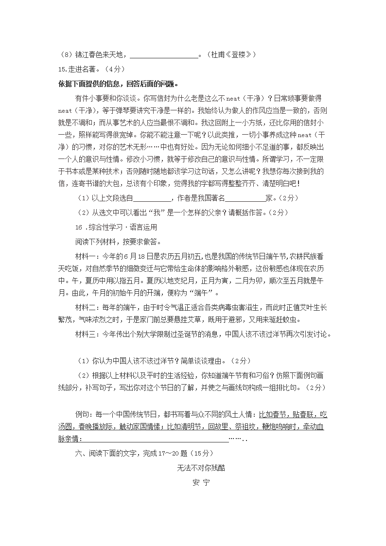 【文档预览】 无忧考网整理发布2018四川广元中考语文真题及答案(Word版),前五页预览如下: