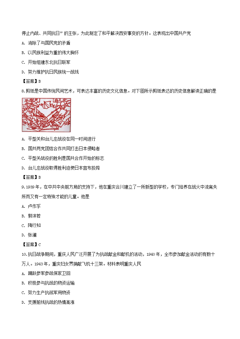 【文档名称】 2019年重庆南岸中考历史真题及答案A卷(Word版).doc