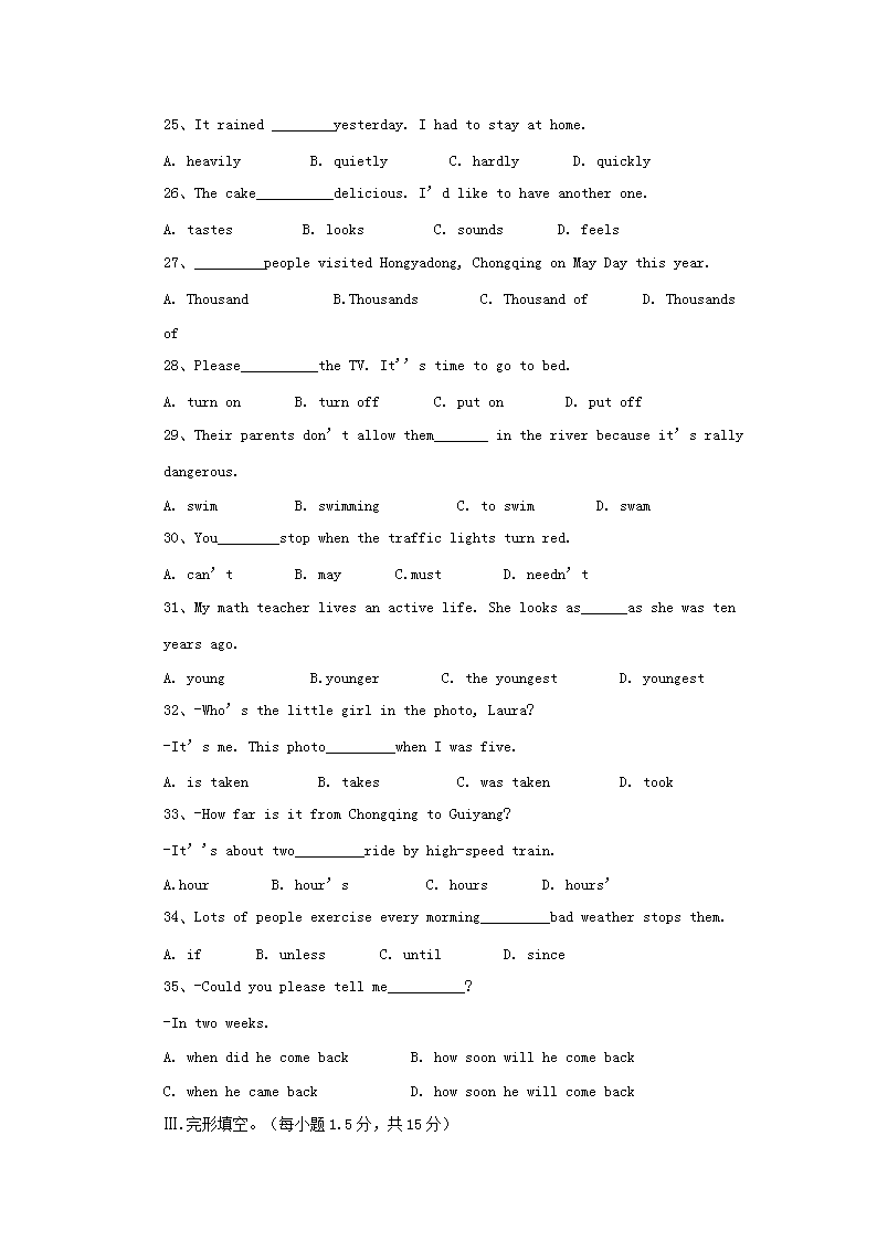 【文档名称】 2018年重庆南川中考英语真题及答案B卷(Word版).doc