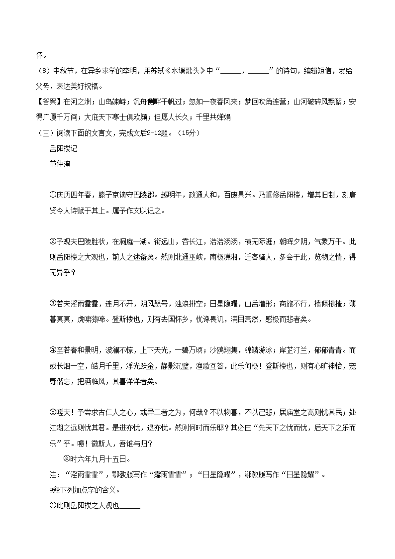 【文档名称】 2018年重庆南川中考语文真题及答案B卷(Word版).doc
