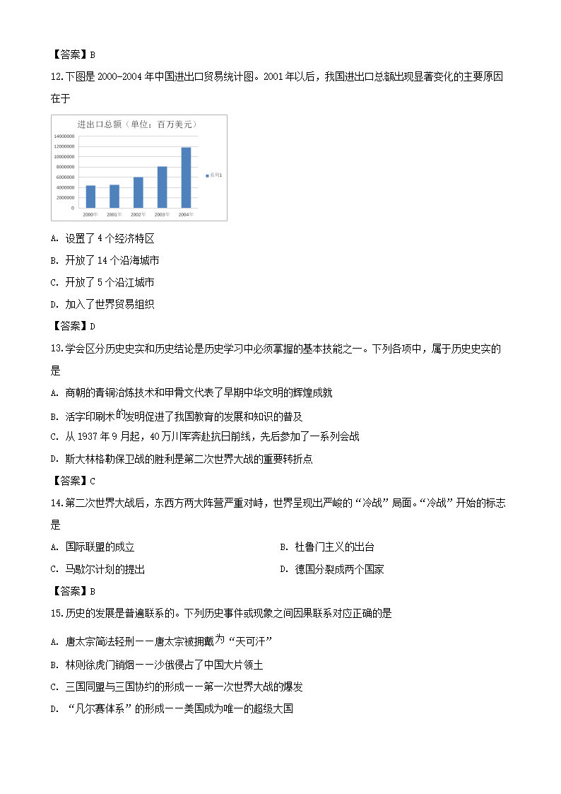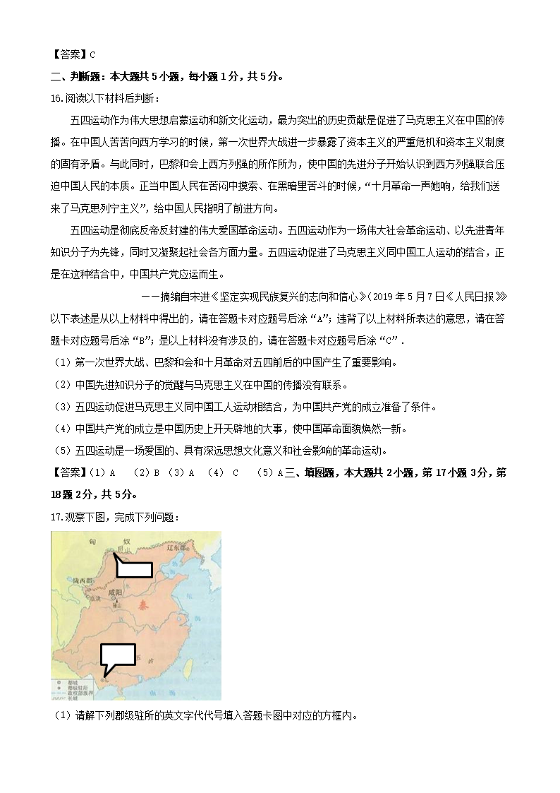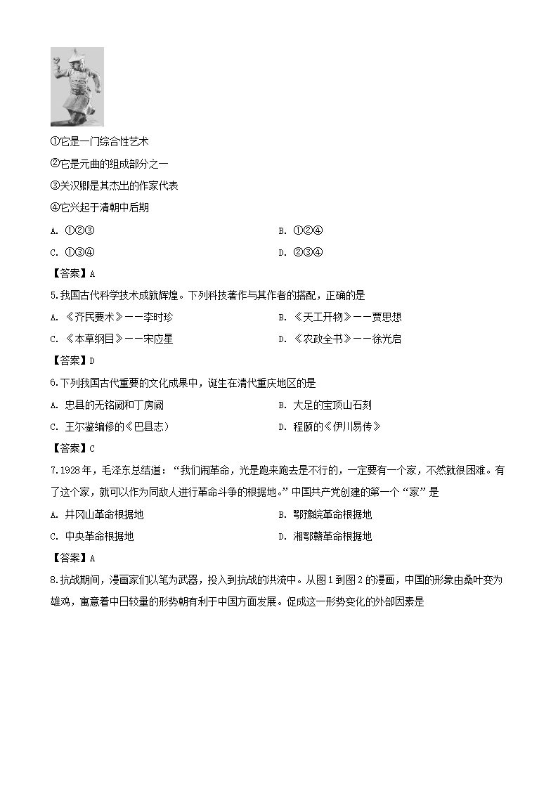 【文档名称】 2019年重庆九龙坡中考历史真题及答案B卷(Word版).doc
