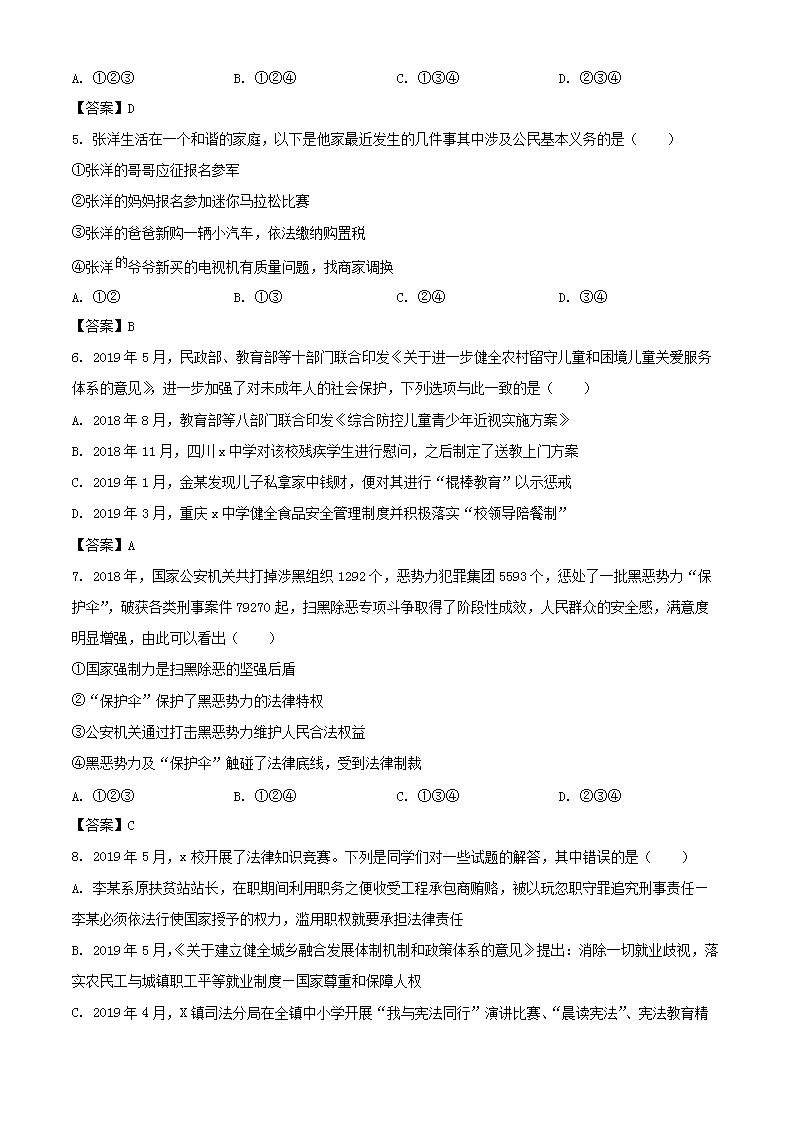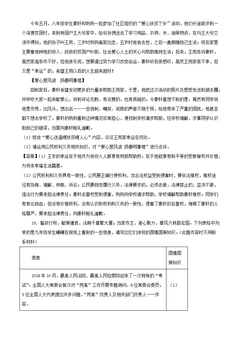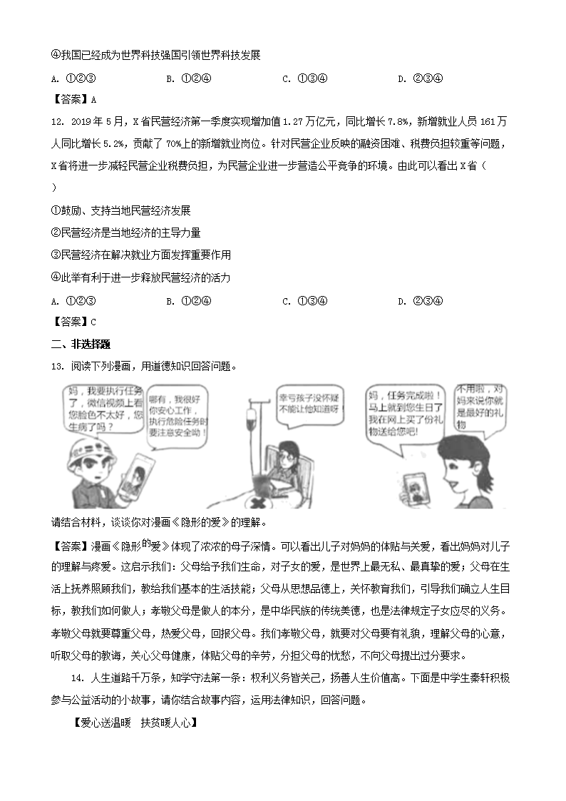 【文档名称】 2019年重庆南川中考道德与法治真题及答案B卷(Word版).doc