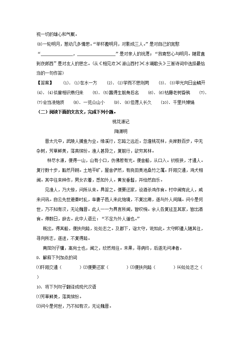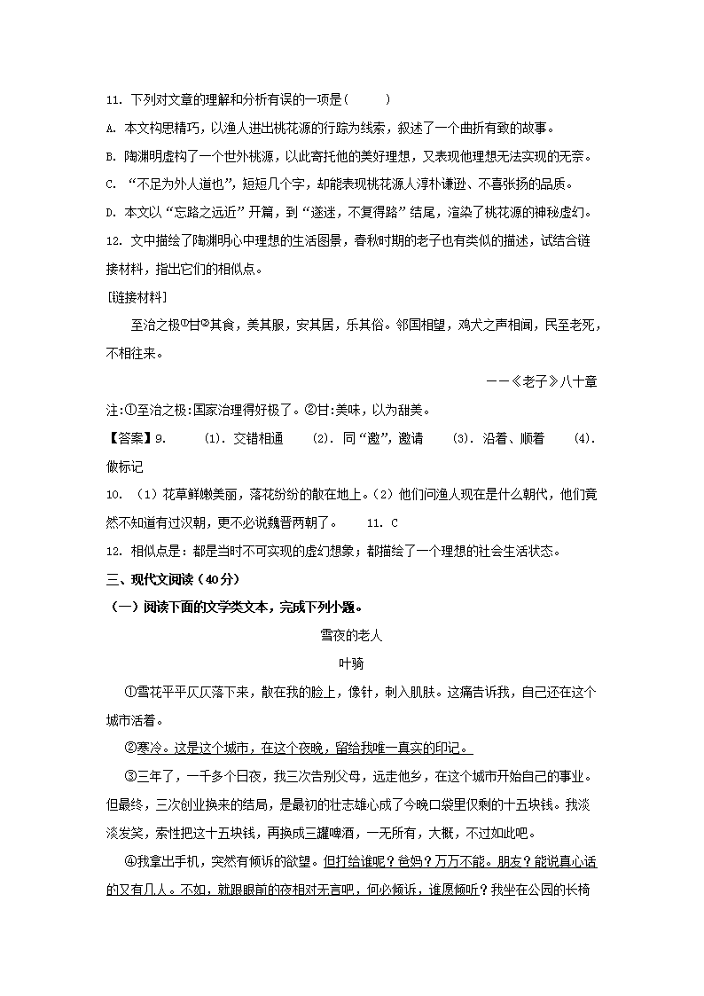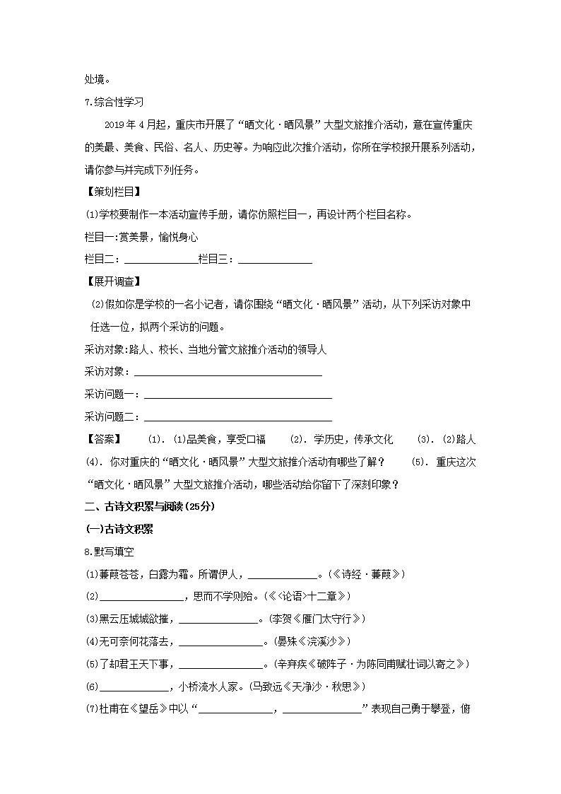 【文档名称】 2019年重庆沙坪坝中考语文真题及答案B卷(Word版).doc