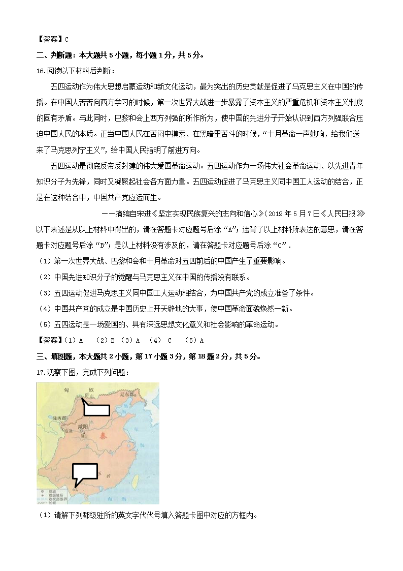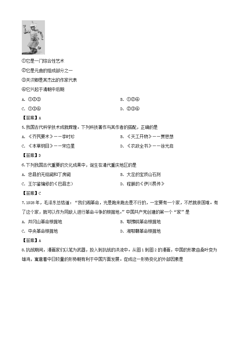 【文档名称】 2019年重庆南川中考历史真题及答案B卷(Word版).doc