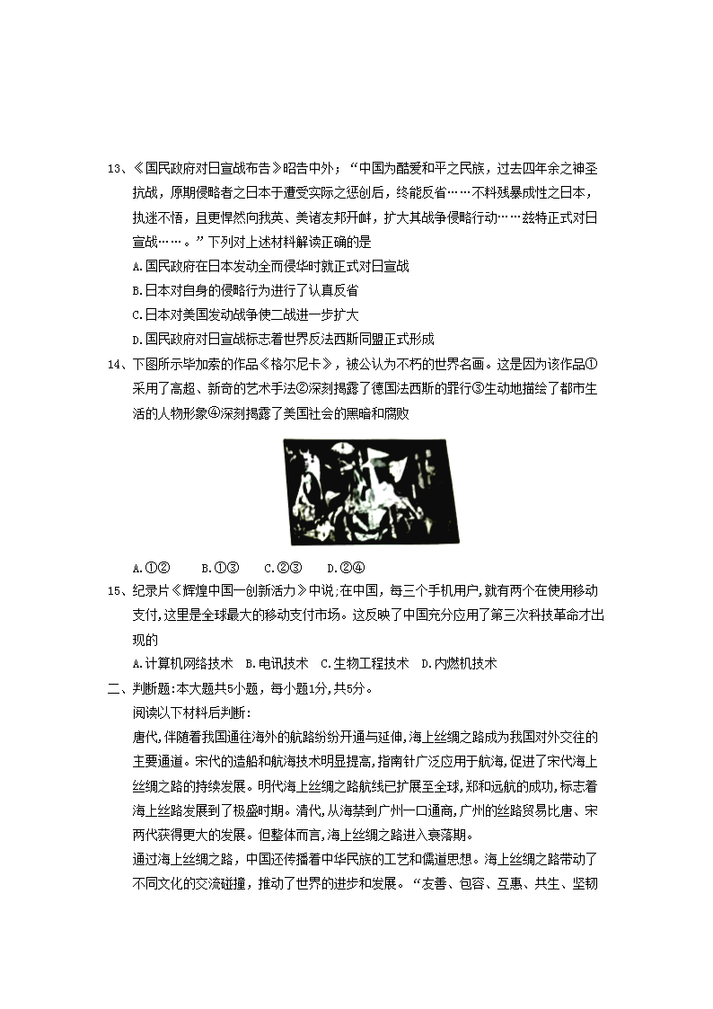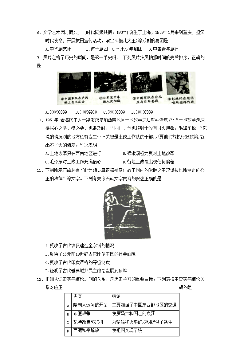 【文档名称】 2018年重庆涪陵中考历史真题及答案B卷(Word版).doc