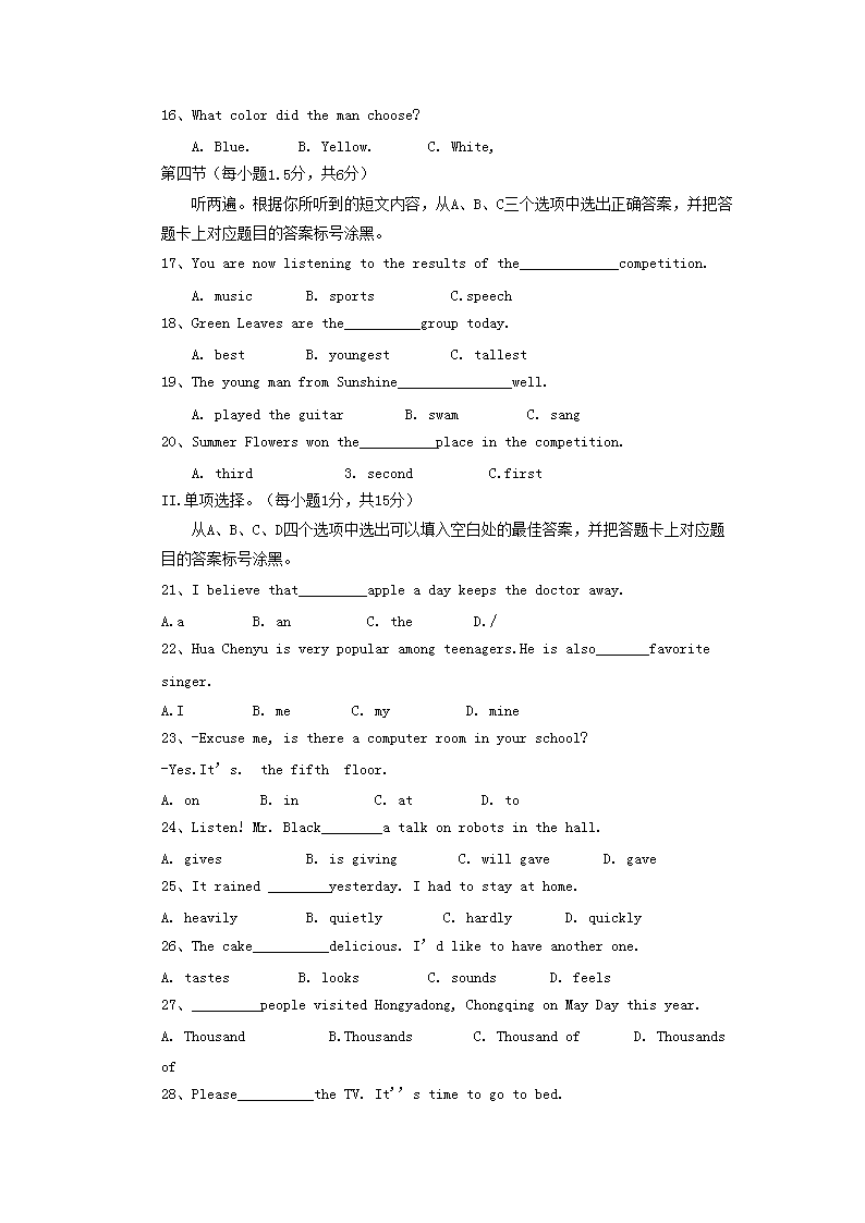 【文档名称】 2018年重庆涪陵中考英语真题及答案B卷(Word版).doc