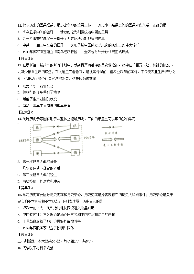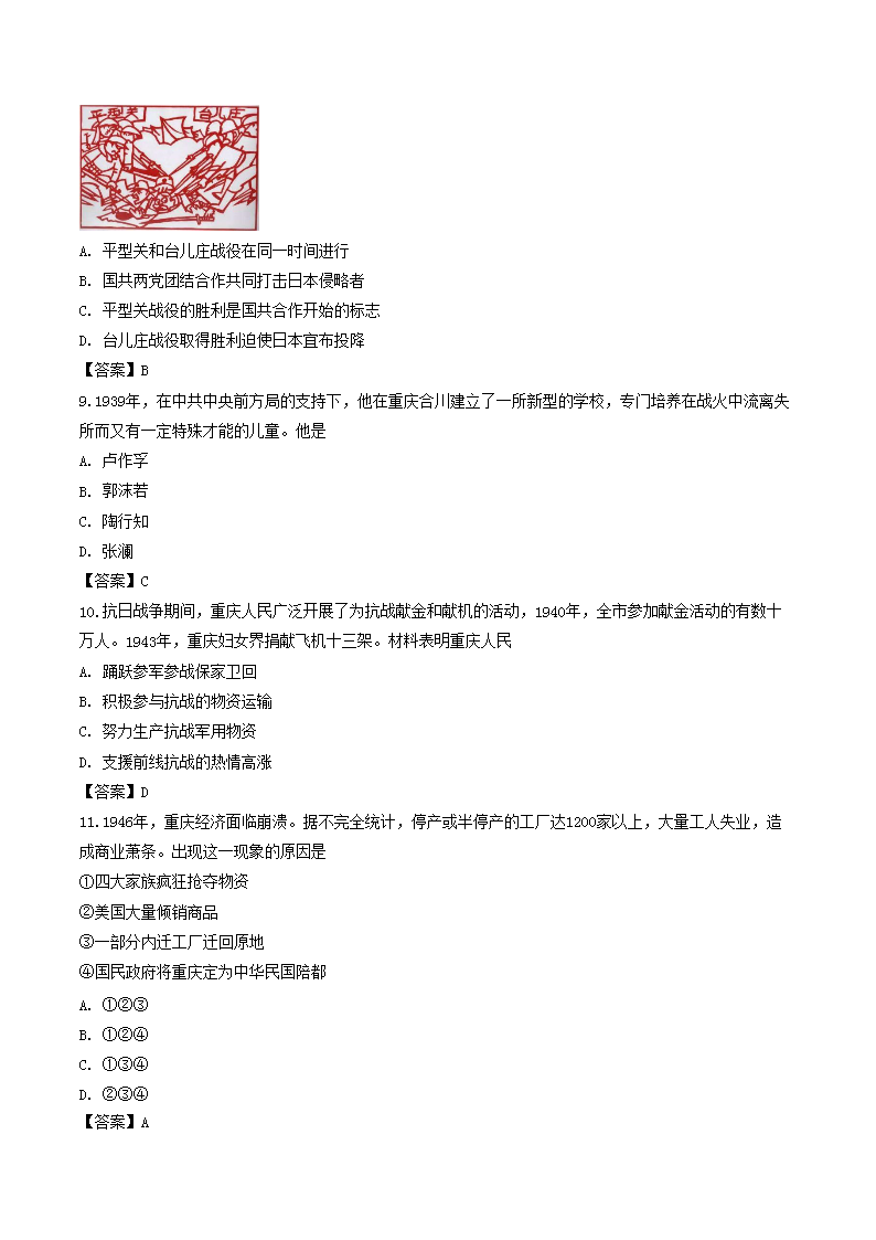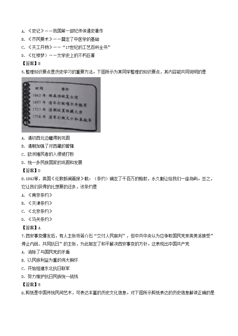 【文档名称】 2019年重庆涪陵中考历史真题及答案A卷(Word版).doc