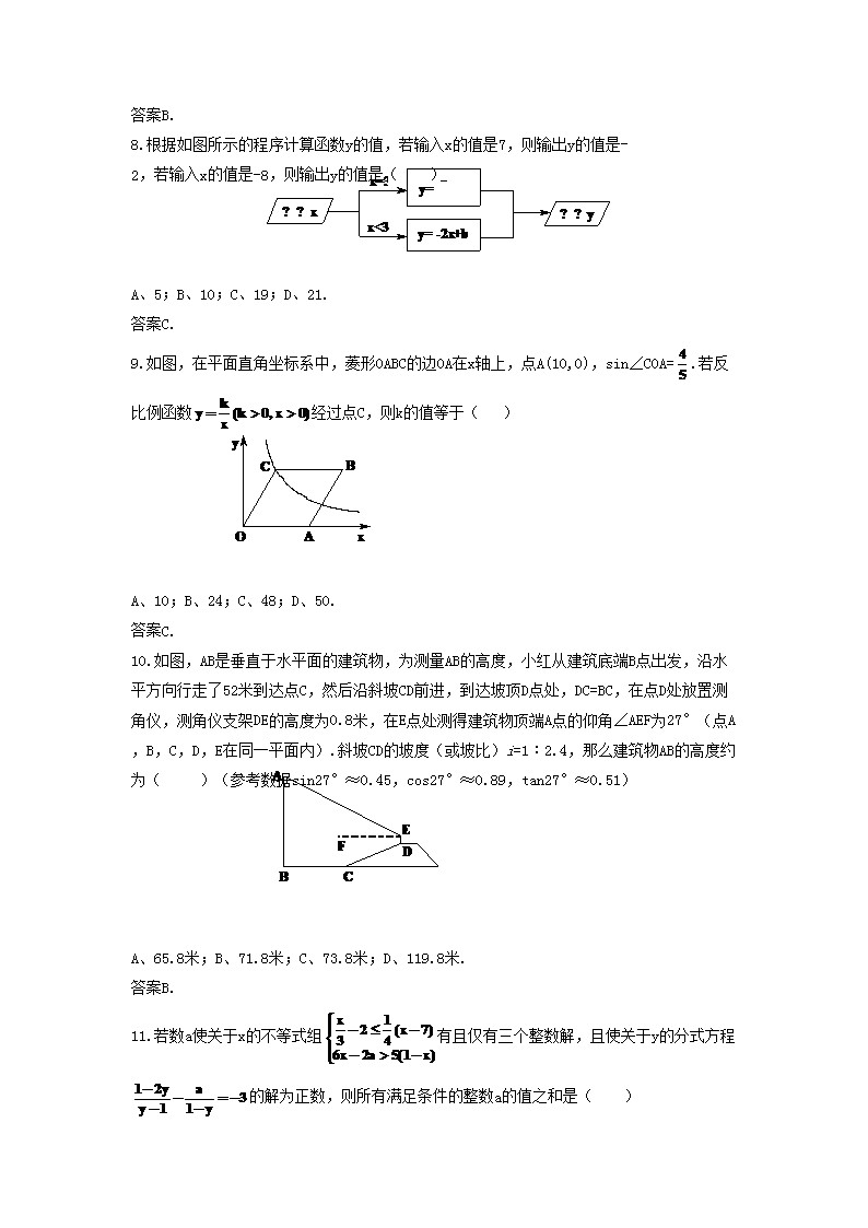 【文档名称】 2019年重庆涪陵中考数学真题及答案B卷(Word版).doc